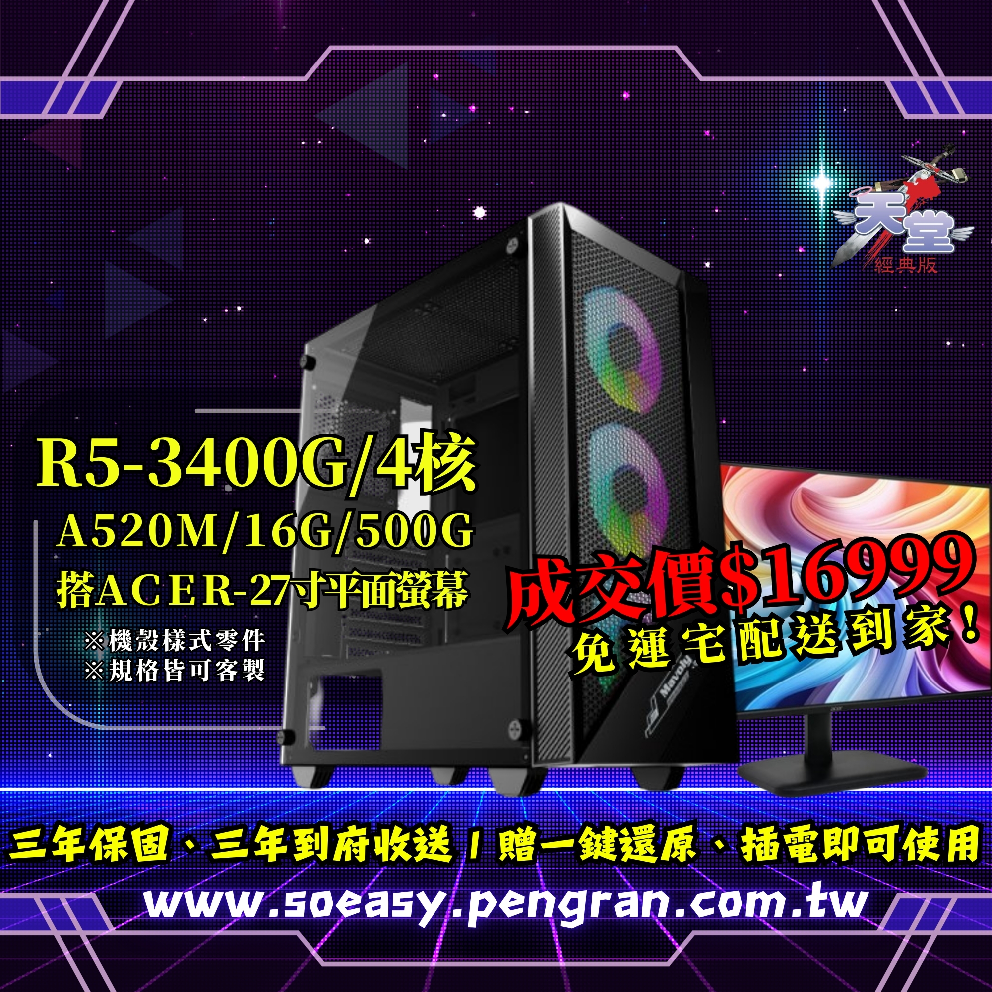 【🔥優惠專案】天堂打幣機套組NO.1 (R5-3400G/A520M /16G/500G SSD)