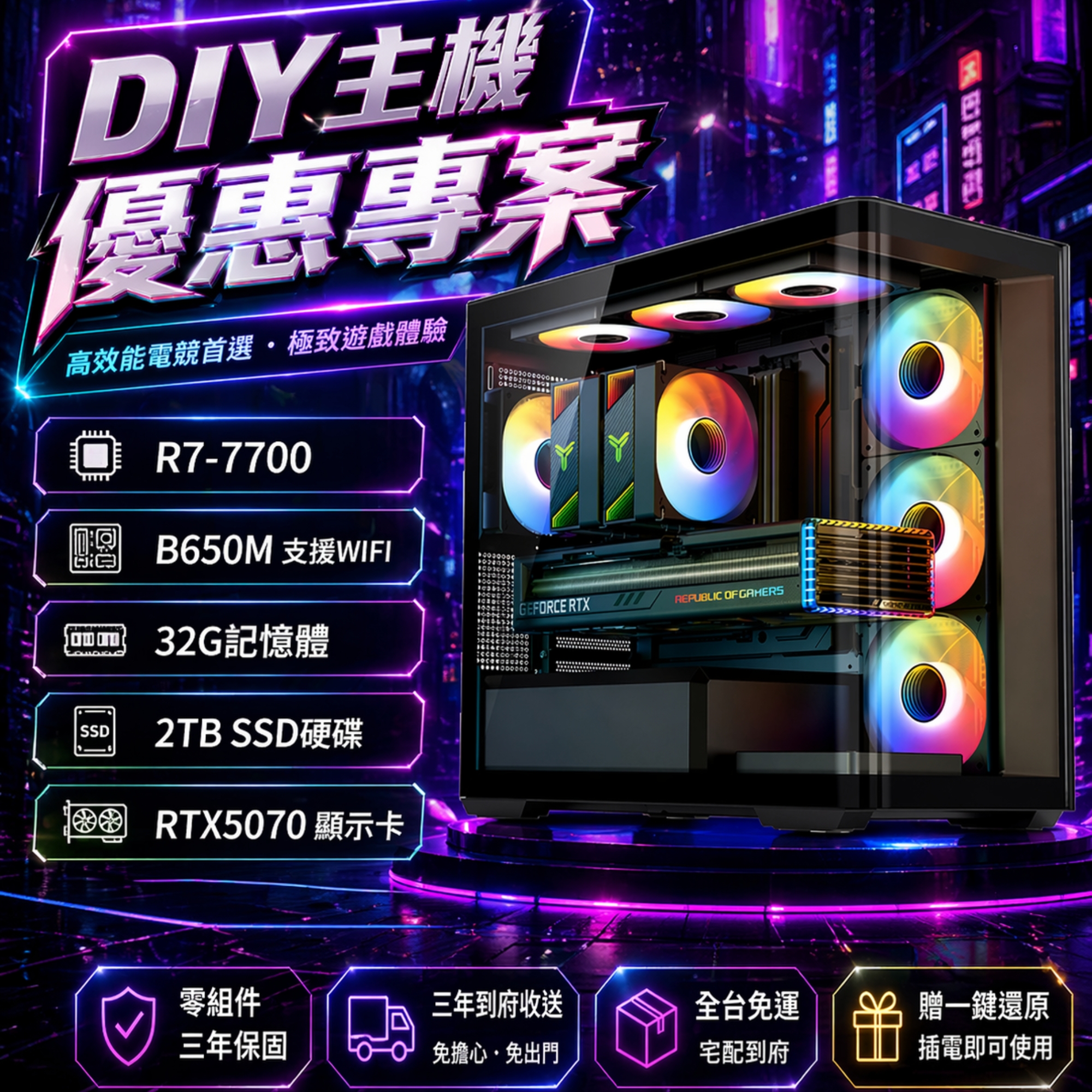 【🔥優惠專案】喬思伯 D300 V2 (R7-7700/B650M /32G/2T/RTX5070-12G)