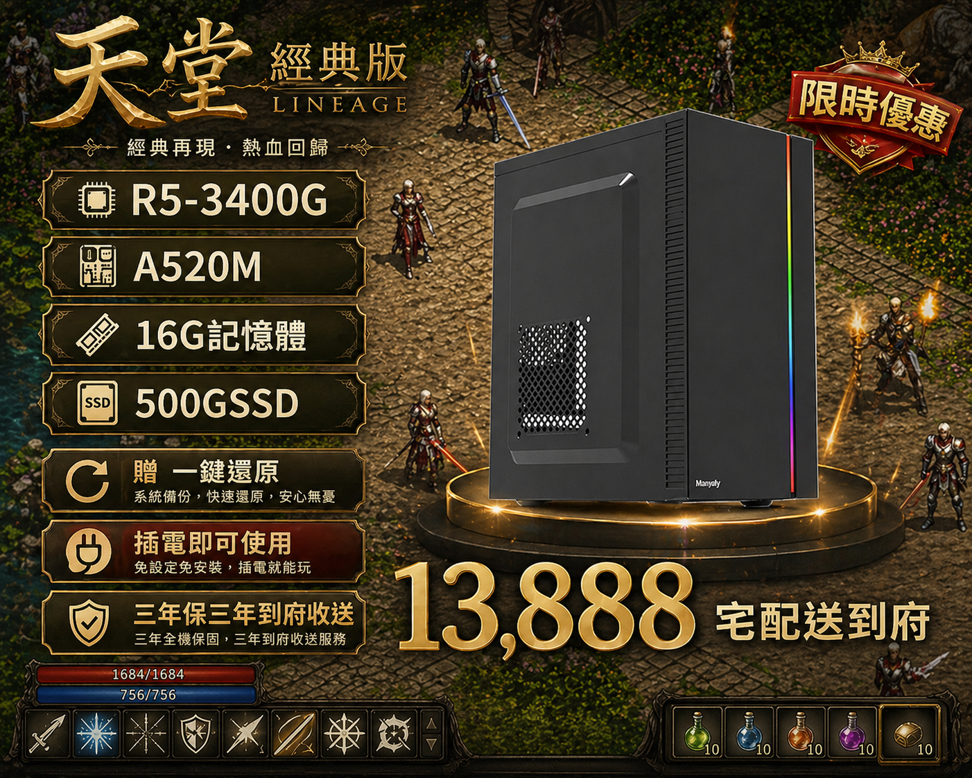 【🔥優惠專案】天堂打幣機TOP.1 (R5-3400G/A520M /16G/500G SSD)