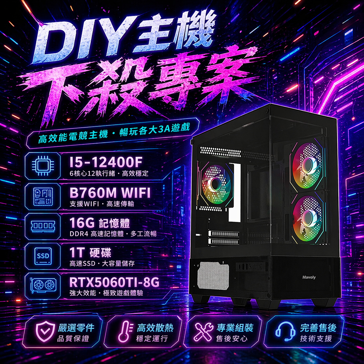 【🔥優惠專案】抗漲始祖😈 (12400F/B760M/16G /1TB/RTX5060-8G)
