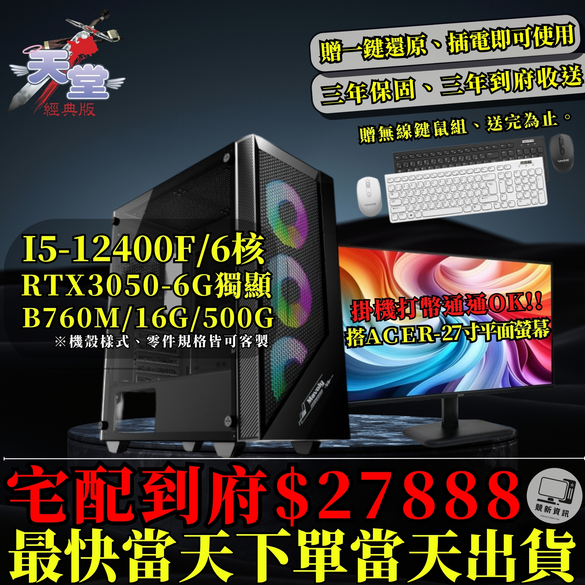 【🔥優惠專案】天堂打架機套組 (I5-12400F /B760M /16G/500G/RTX3050-6G)