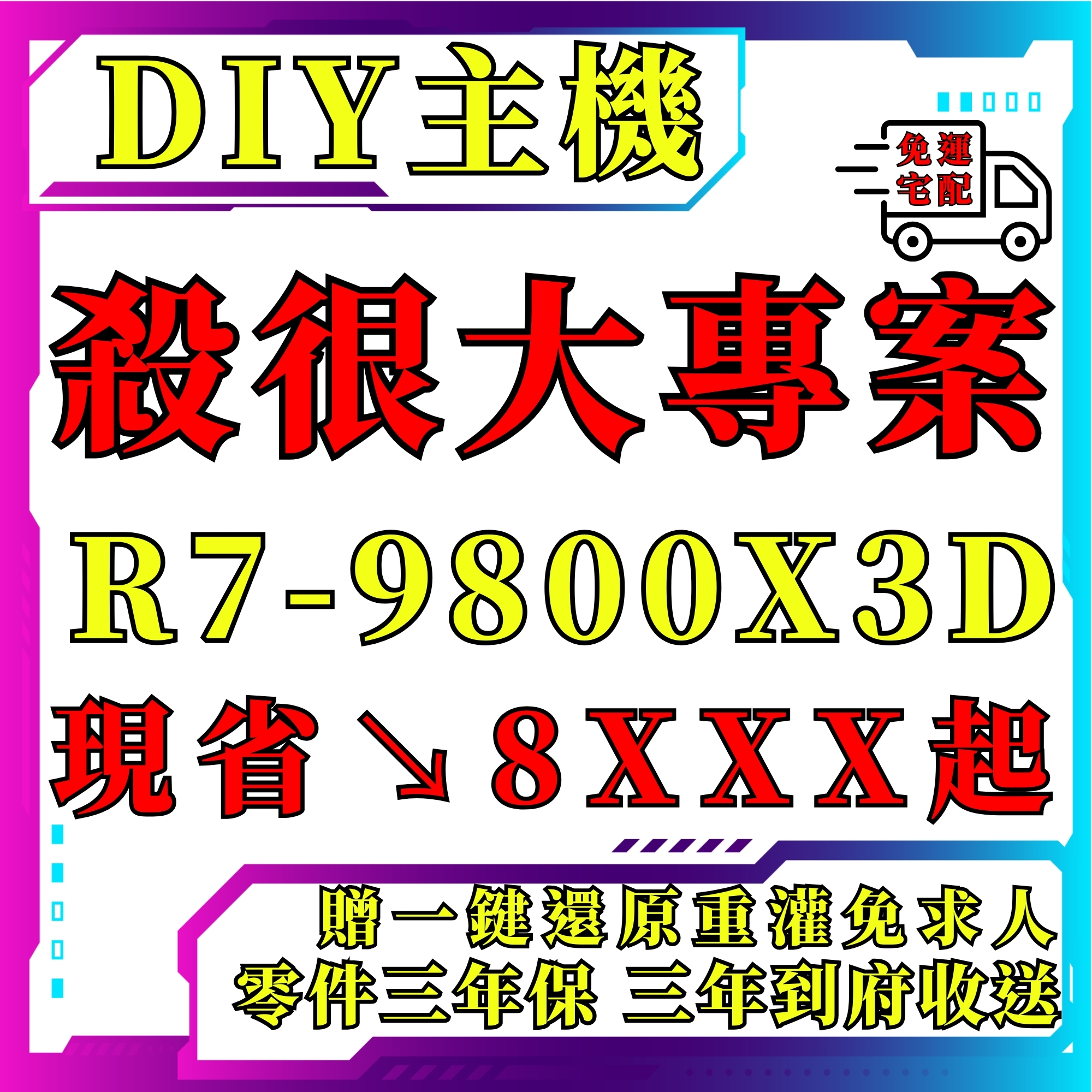 【↘️下殺專案】R7-9800X3D /X870 /32G/1T/1200W