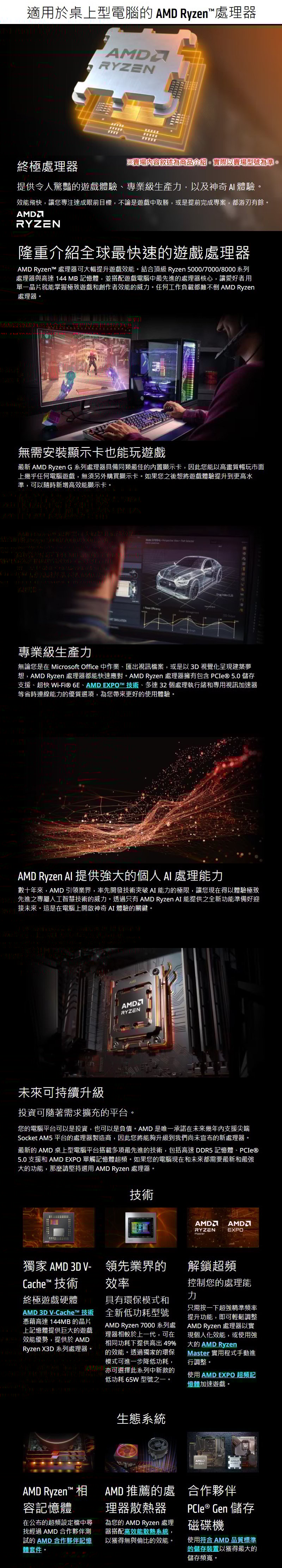 ● 基本時脈 4.2GHz / 最大超頻時脈 最高可達 5.1GHz● 處理器核心數量 8● 封裝 AM5