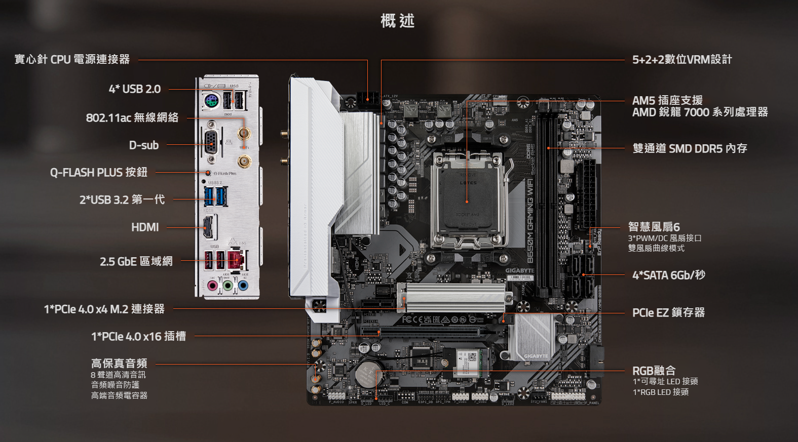 ✦ 適用CPU腳位:Socket AM5 (Ryzen 7000 系列)
