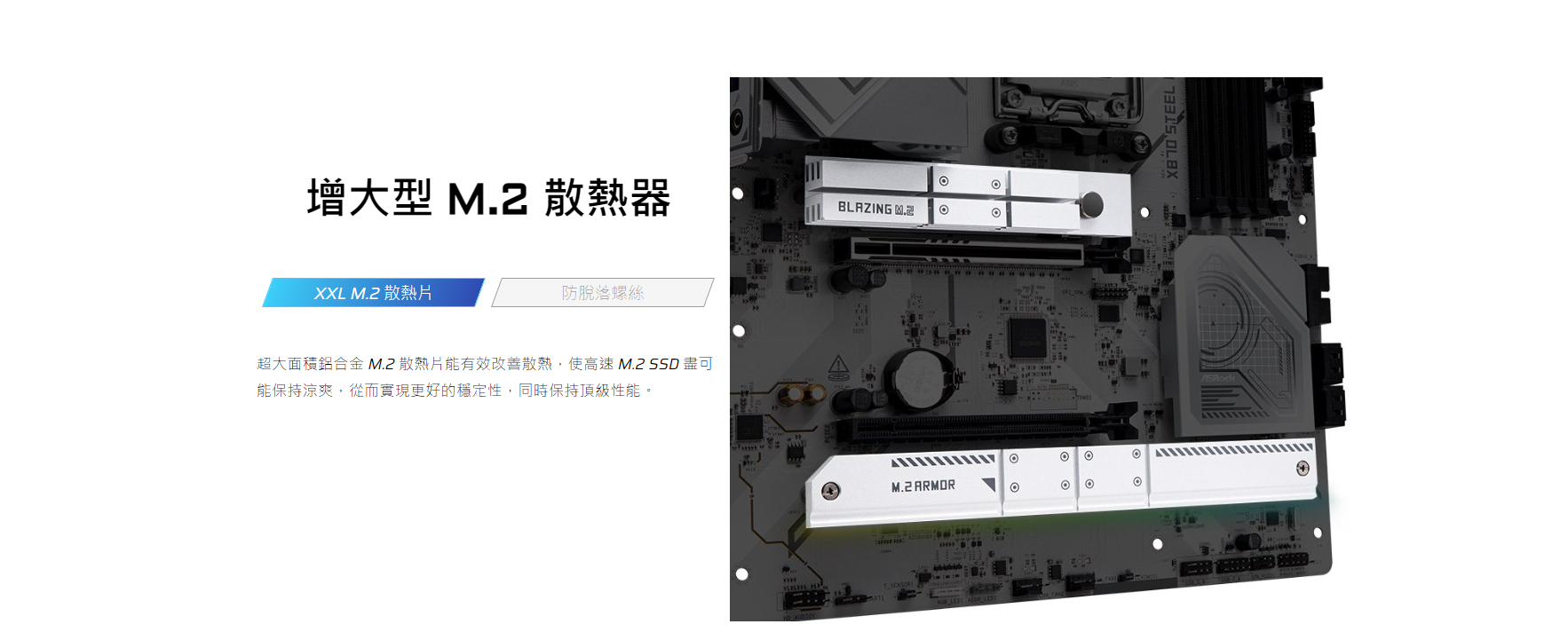 ● 支援 Toolless Multi-Layer M.2 Heatsink, M.2 底部散熱片