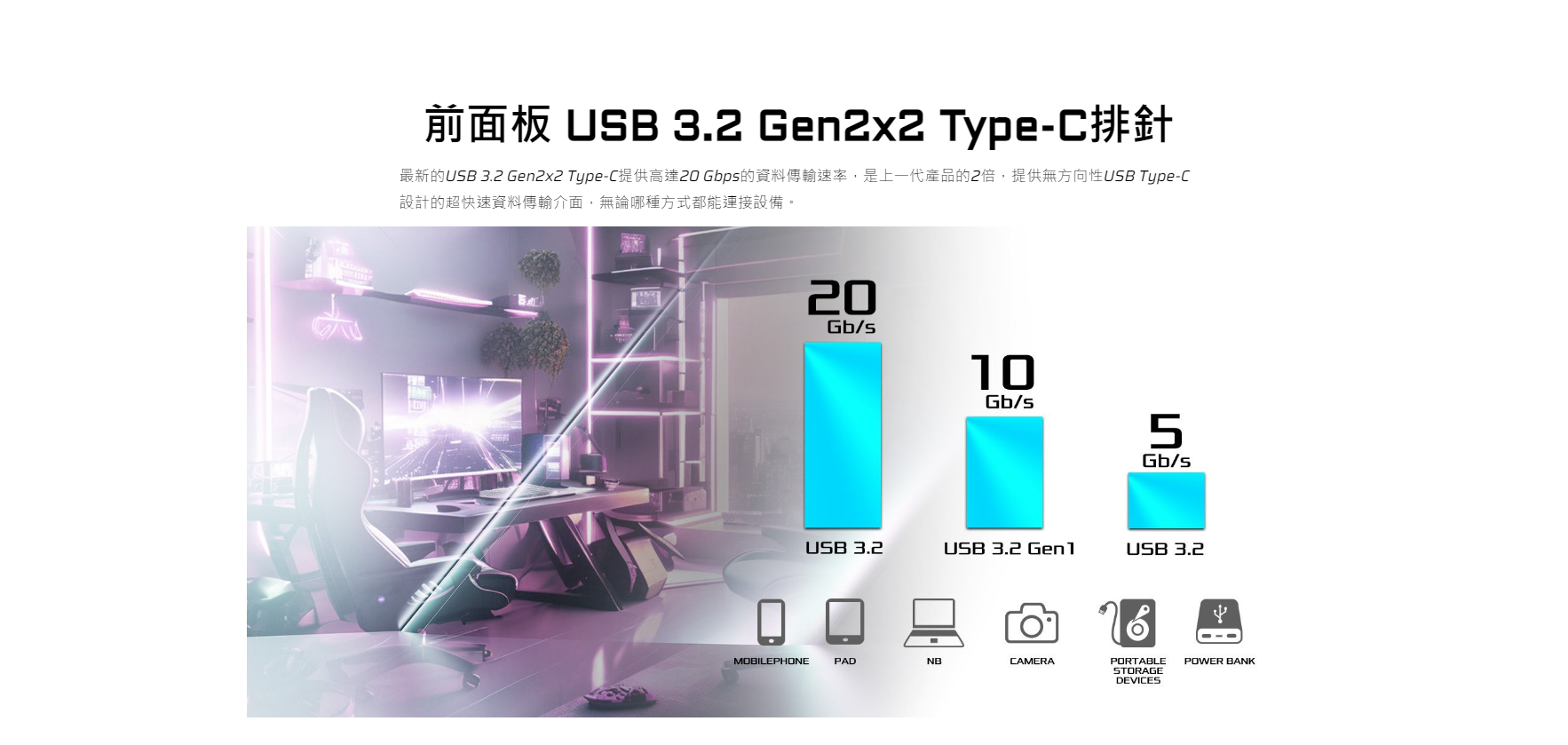 1 USB 3.2 Gen2x2 Type-C (前置),