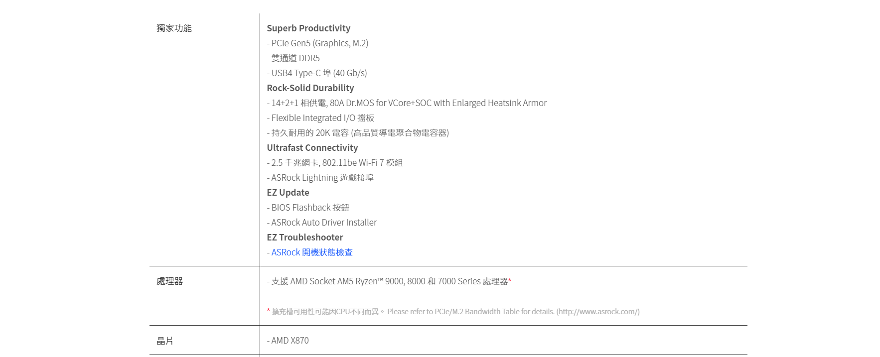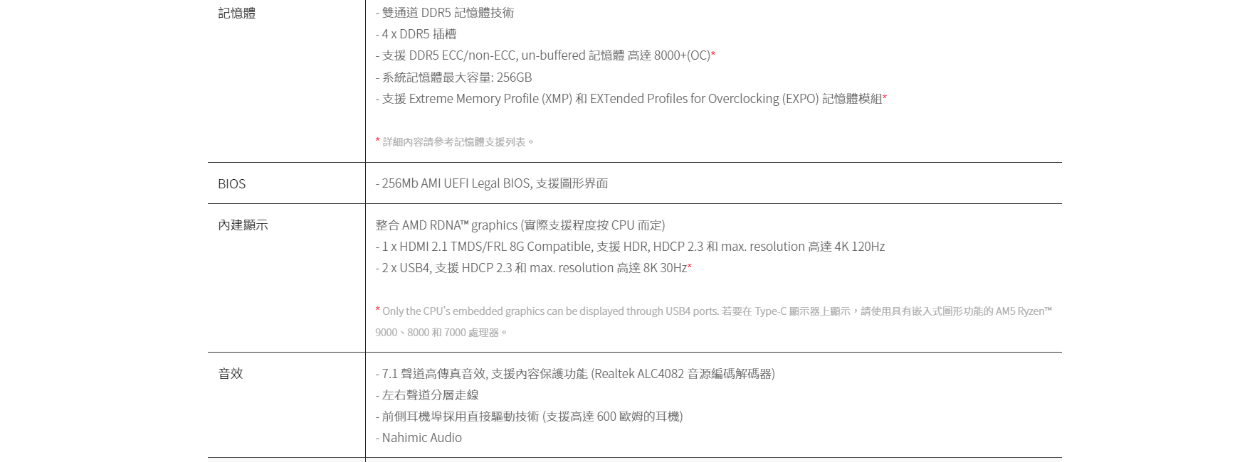 ● 援 AMD Ryzen™ 9000, 8000 和 7000 Series 處理器