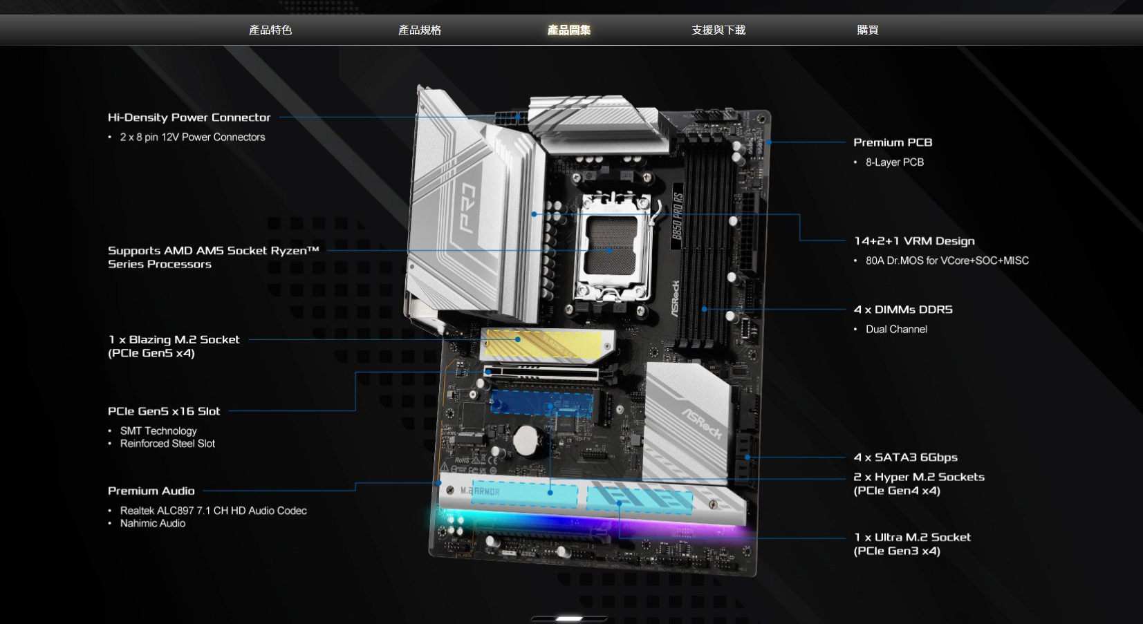 ● 支援 AMD AM5 插槽 Ryzen™ 9000, 8000 和 7000 系列處理器