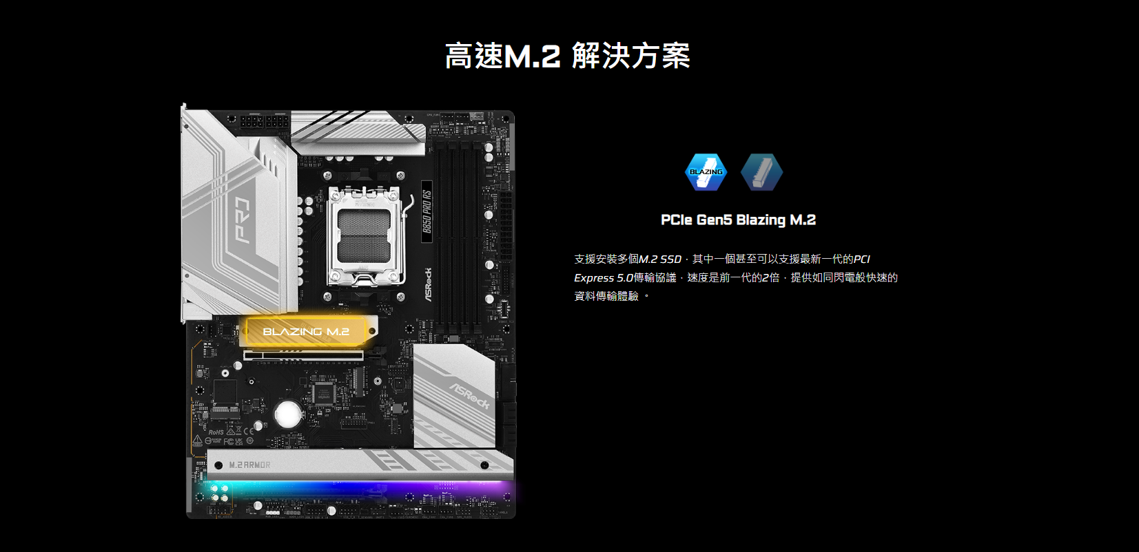● 1 Blazing M.2 (PCIe Gen5x4)
