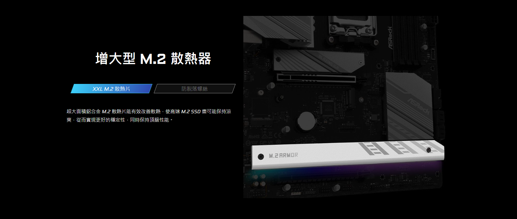 ● 支援 M.2 底部散熱片, BIOS Flashback
