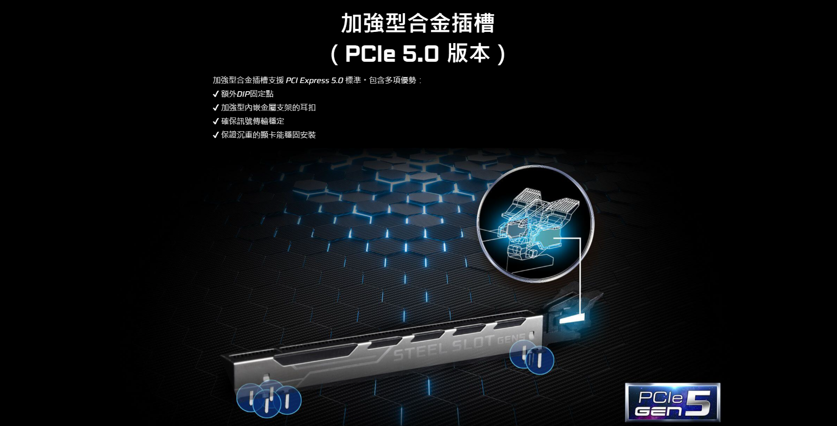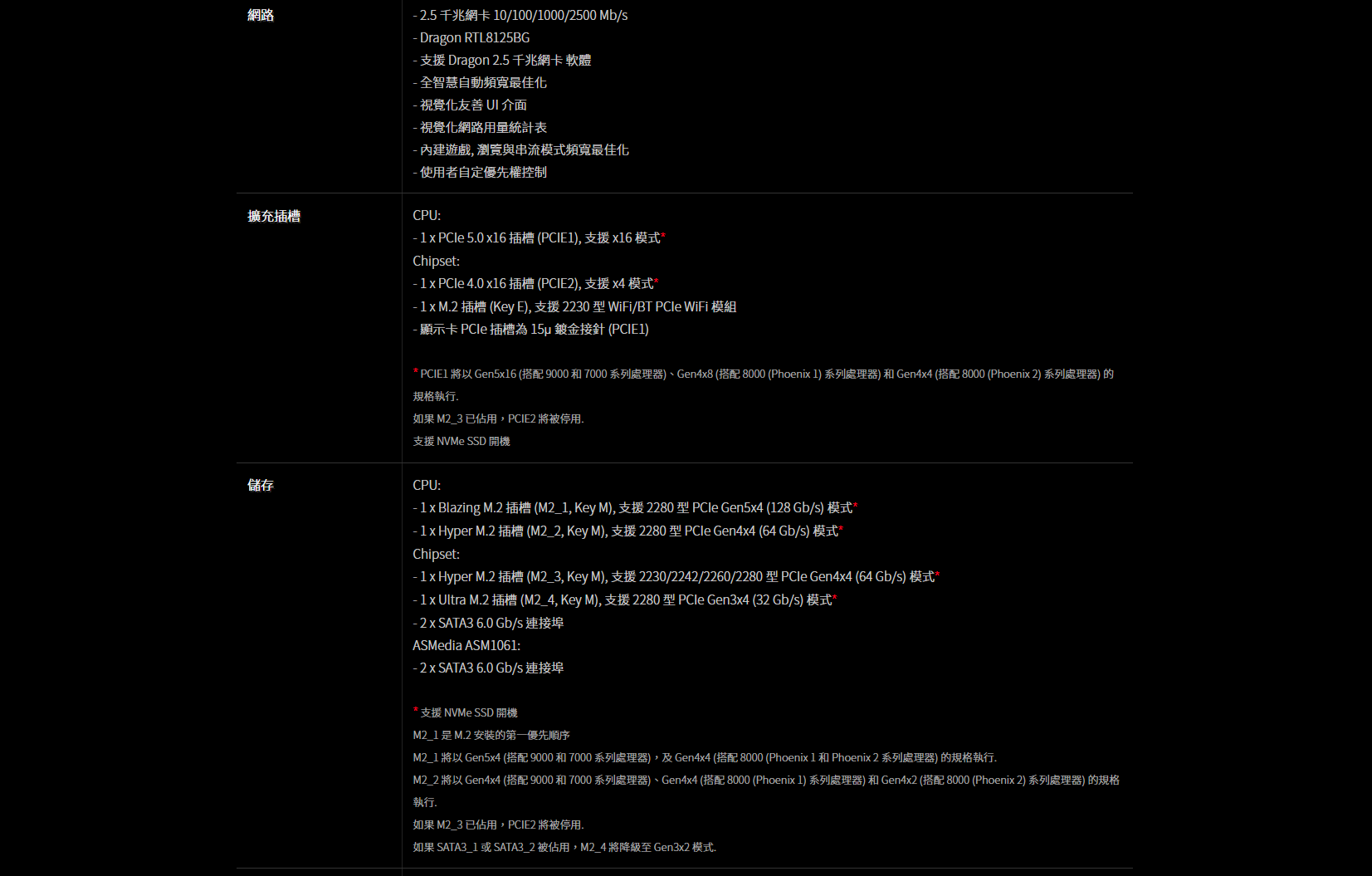 ● PCIe 5.0 x16, 1 PCIe 4.0 x16, 1 M.2 Key E 用於 WiFi