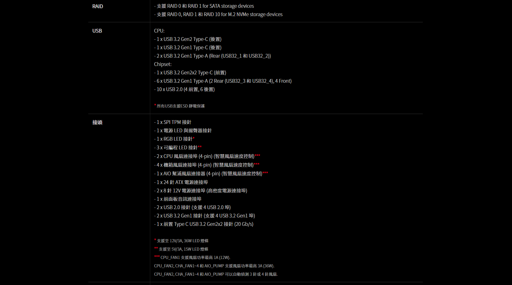 。8 USB 3.2 Gen1 (4 前置, 4 後置)