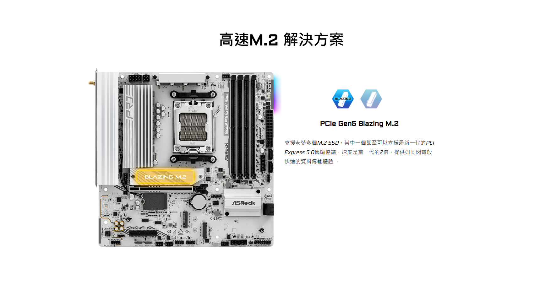 ● 1 Blazing M.2 (PCIe Gen5x4)
