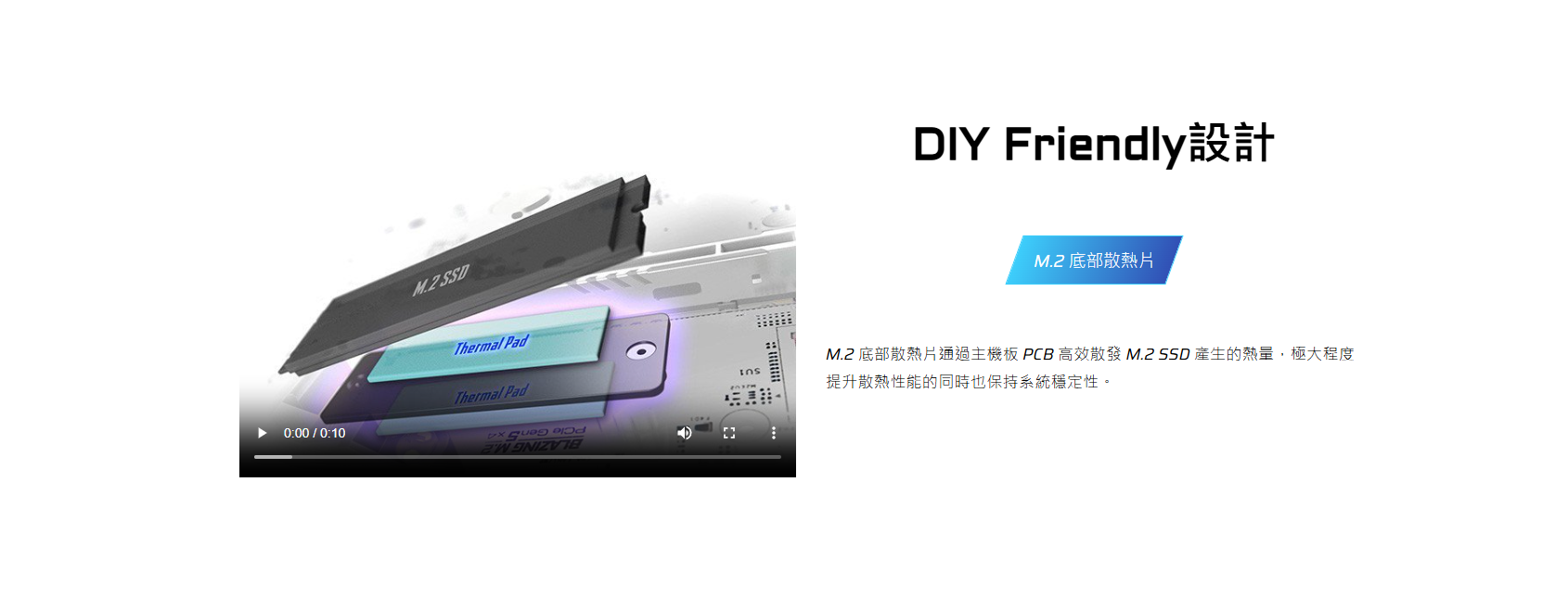 ● 支援 M.2 底部散熱片, BIOS Flashback