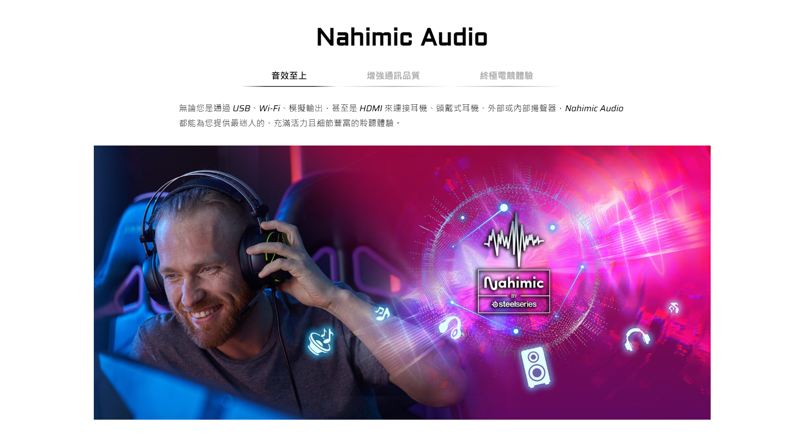 ● Realtek ALC897 7.1 聲道高傳真音效編解碼器, Nahimic Audio