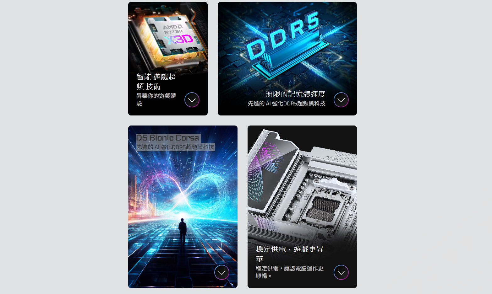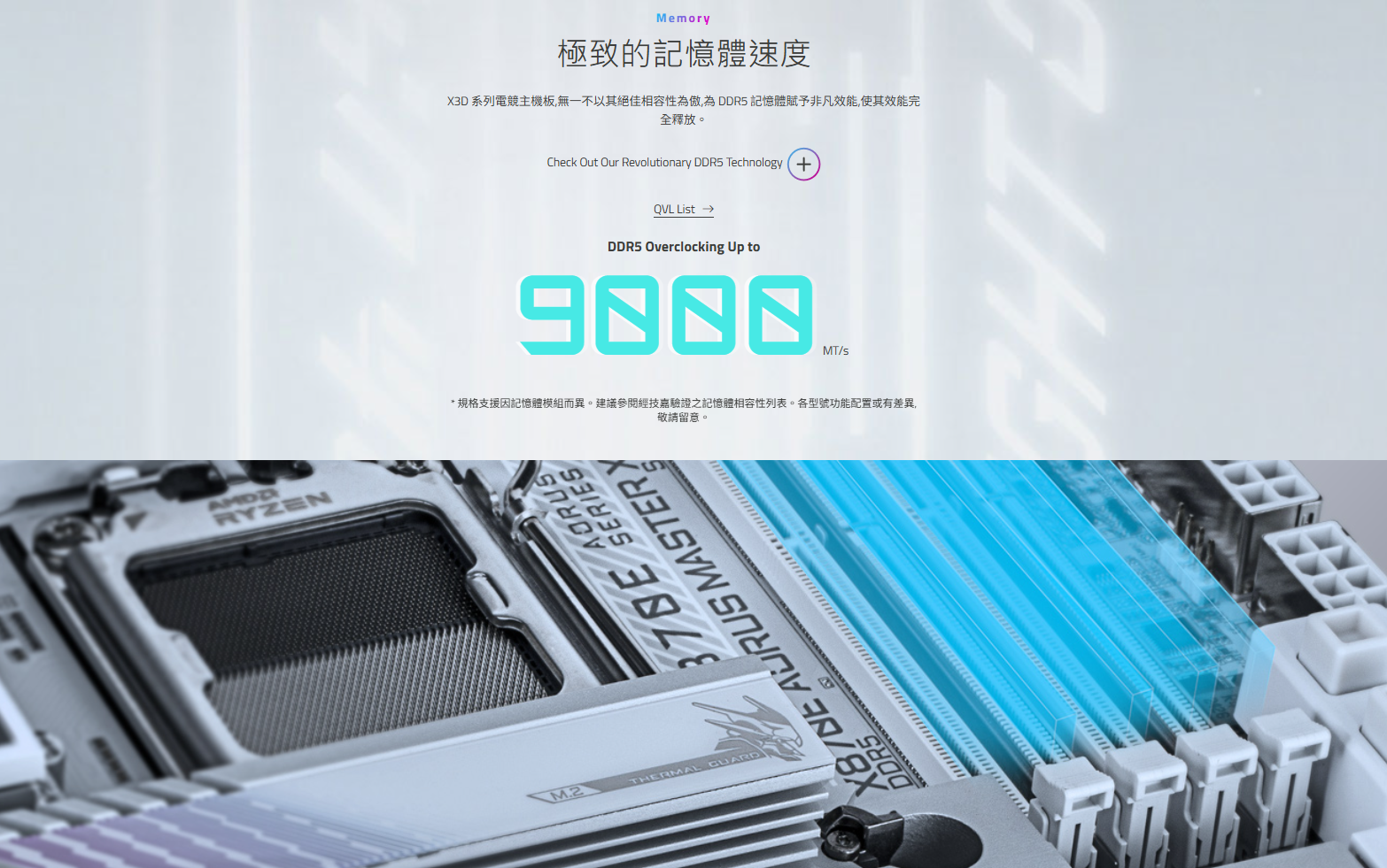● 雙通道DDR5 : 4組記憶體插槽,支援AMD EXPO™ 記憶體模組