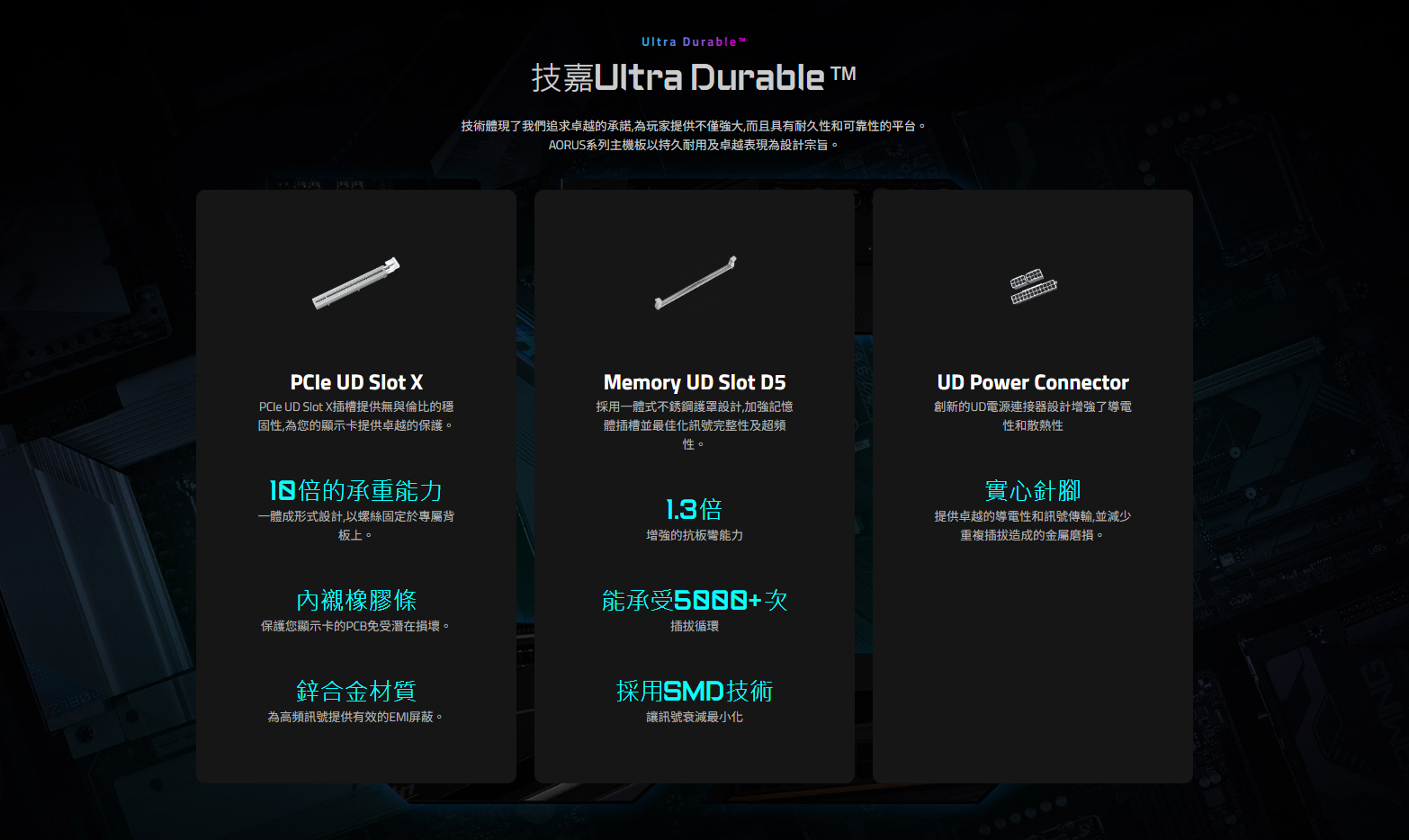 ● PCIe UD Slot X : 提供顯示卡10倍承重強度
