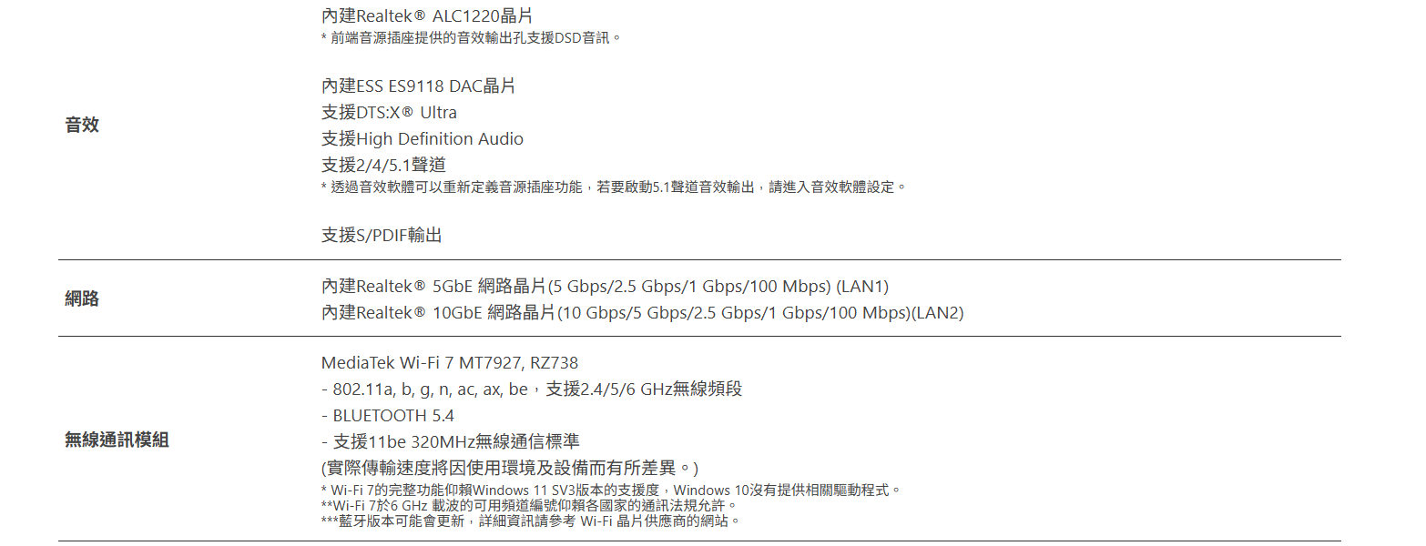 ● 迅速的網路連線 : 10GbE LAN + 5GbE LAN & Wi-Fi 7 搭配指向型超高增益天線