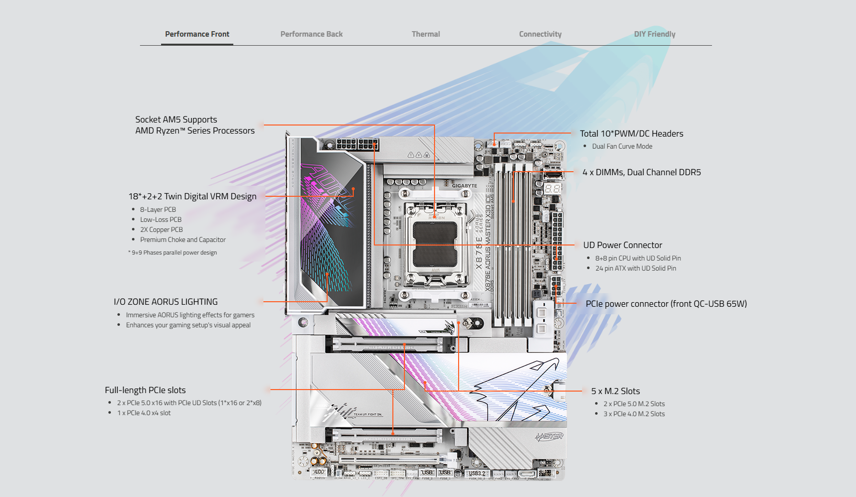 ● 超高速儲存 : 5個 M.2 插槽,包括 PCIe 5.0 x4 介面