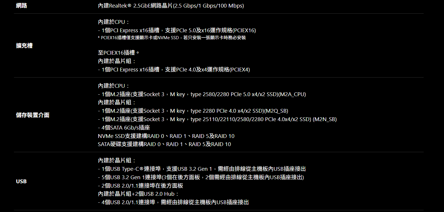 ✦ 超高速儲存 : 3個 M.2 插槽,包括 1個 PCIe 5.0 x4 介面