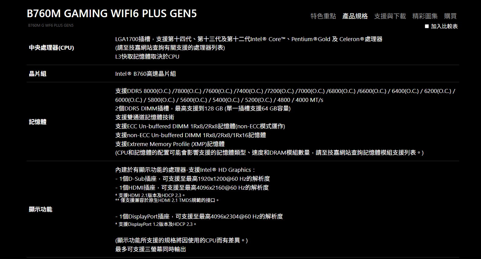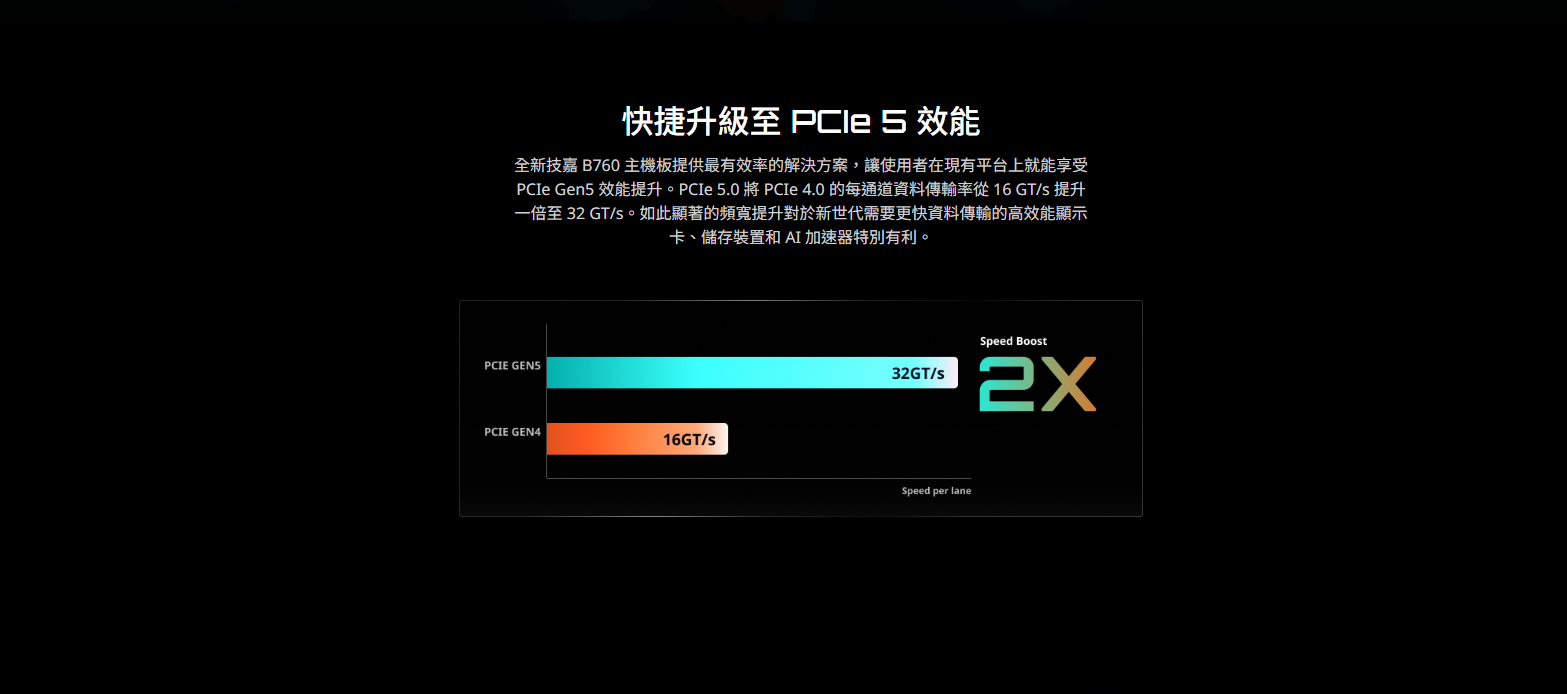 ✦ 雙通道DDR5 : 2組記憶體插槽,支援XMP記憶體模組