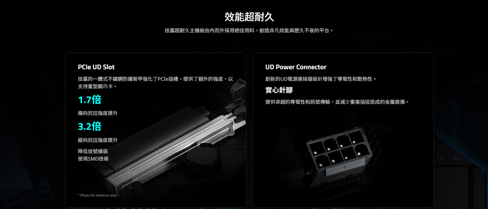 ✦ PCIe UD Slot : Ultra Durable™ SMD PCIe 5.0 裝甲強化顯示卡支撐力