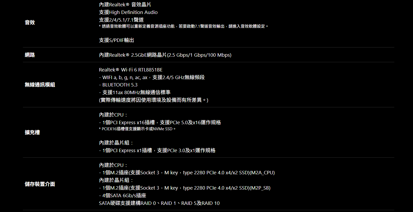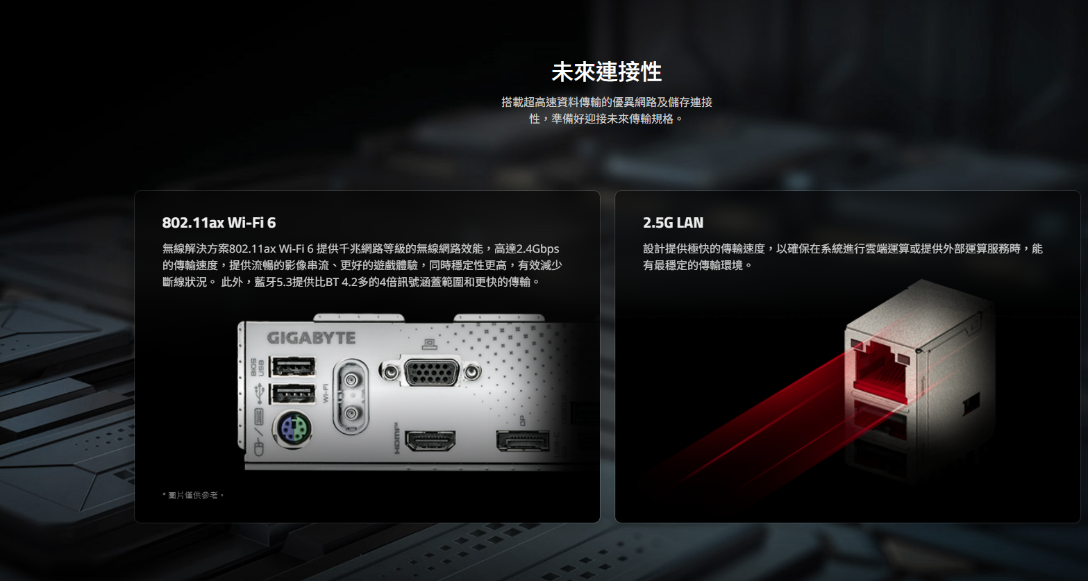 ✦ 高速的網路連線 : Wi-Fi 802.11ax + 2.5GbE網路