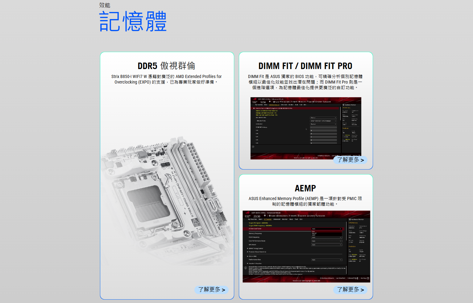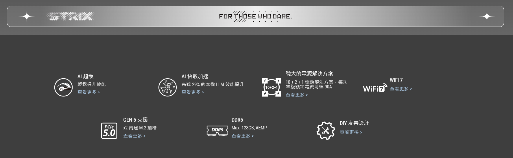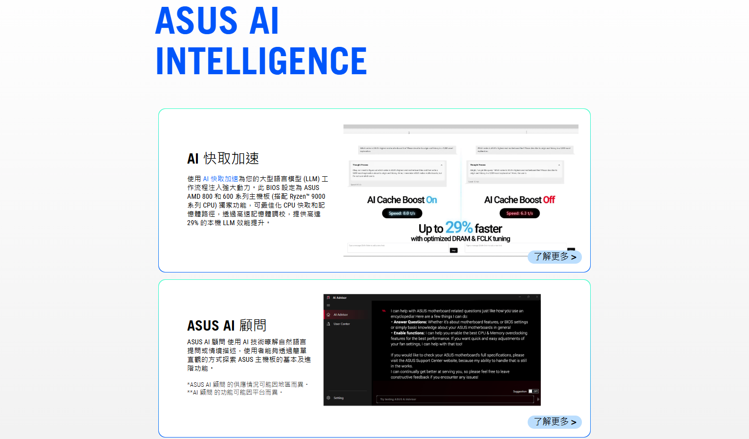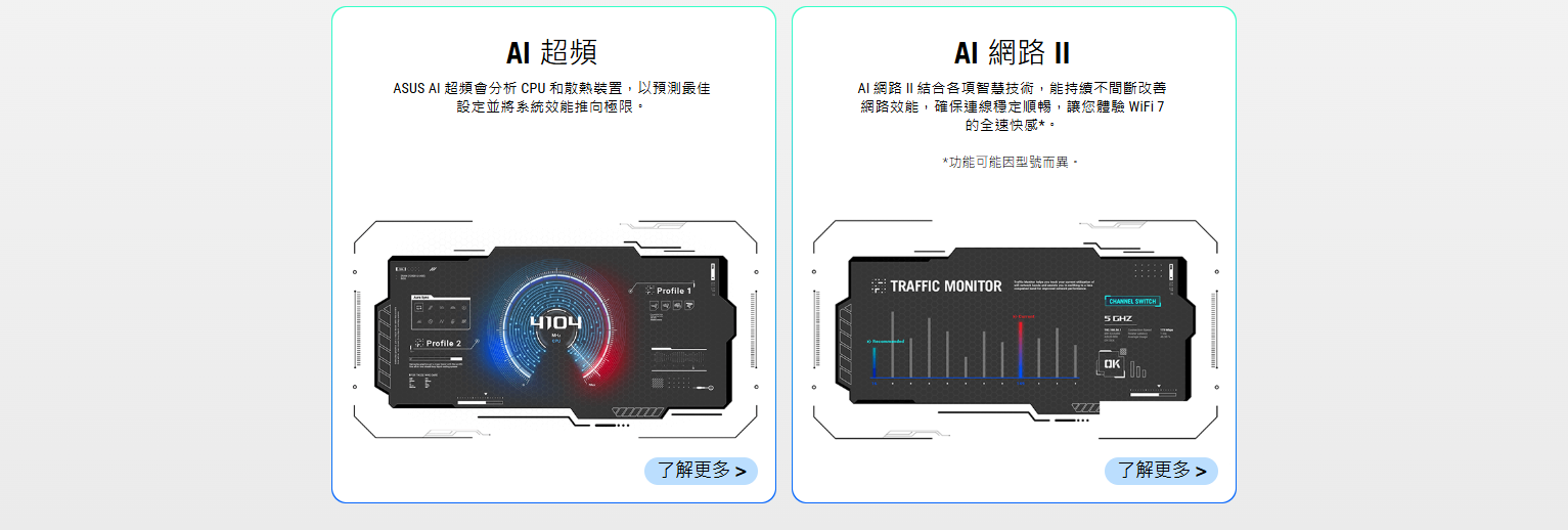 ✦ 智慧控制:AI Cache Boost、ASUS AI Advisor、AI 超頻、AI Networking II 和 AEMP 可簡化設定並提升效能
