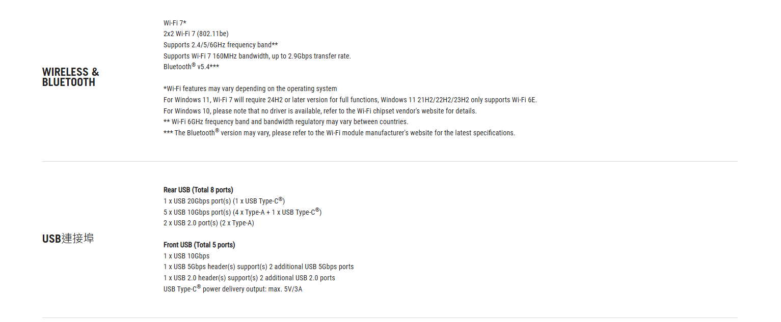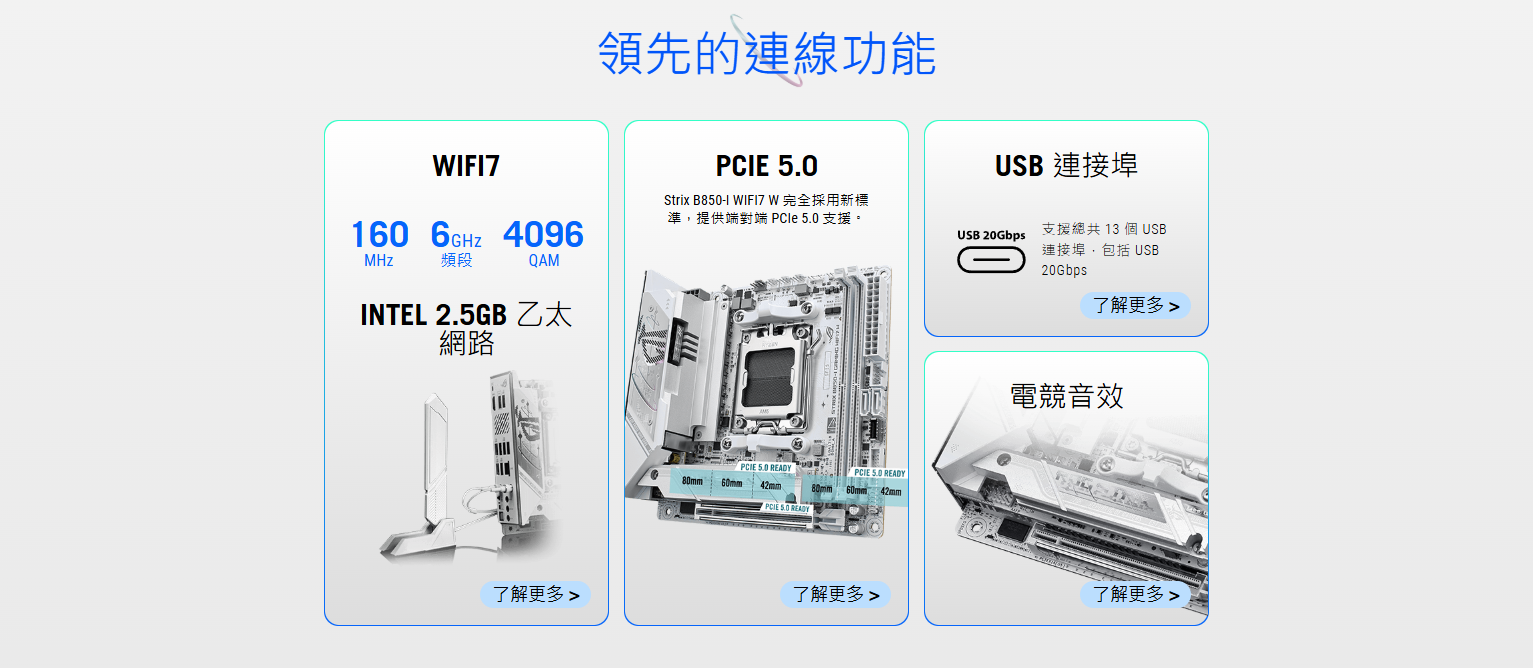 ✦ 高效能網路:板載 WiFi 7 (802.11be),搭載 Intel® 2.5 Gb 乙太網路