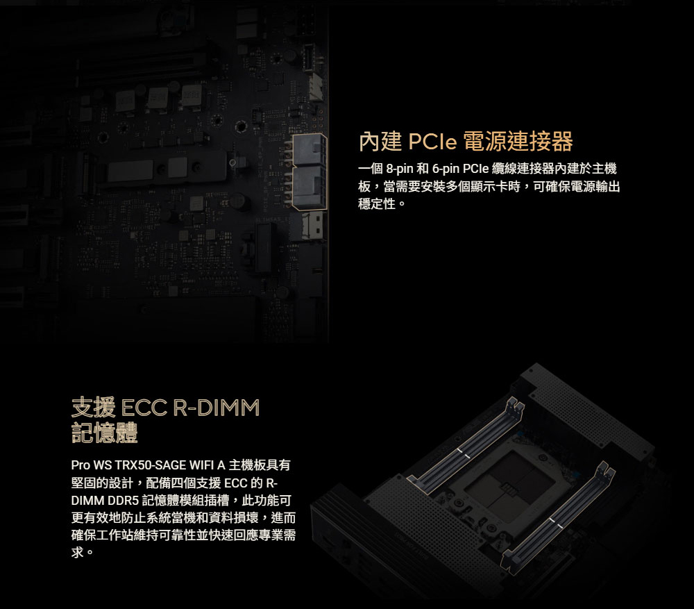 ✦ CPU 和記憶體超頻: 支援高達 1TB ECC R-DIMM DDR5 記憶體模組 (1DPC)