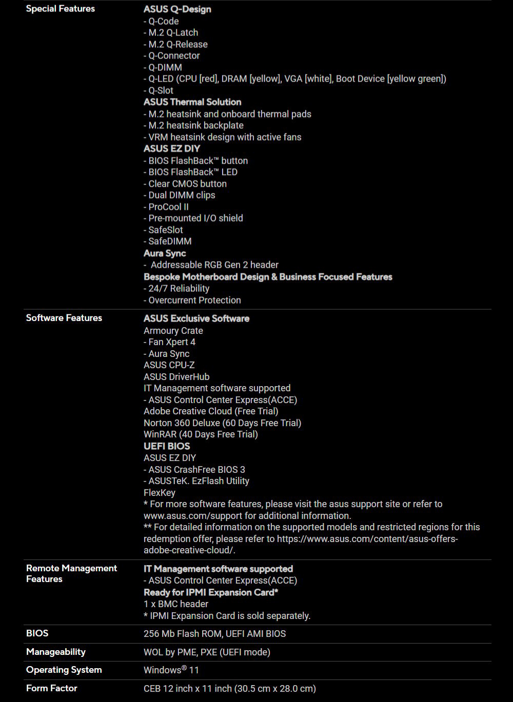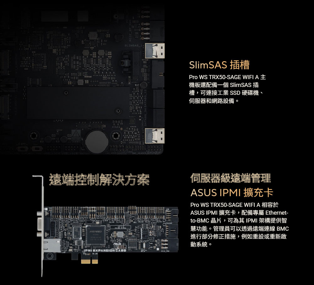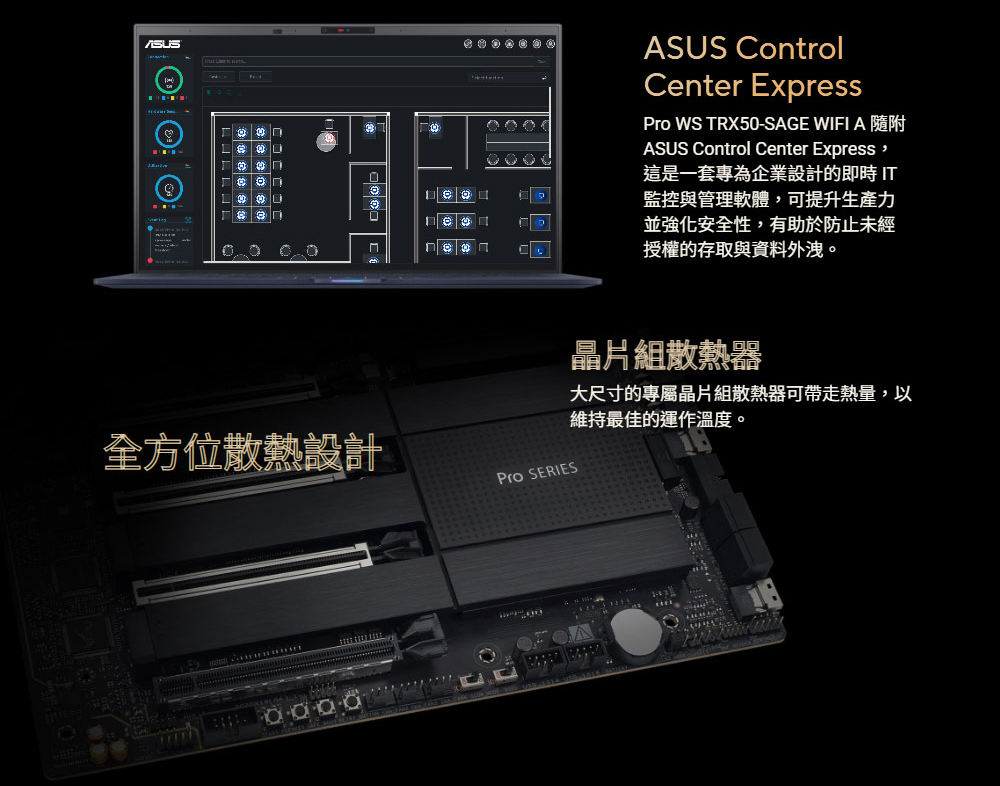 ✦ 伺服器級 IPMI 遠端管理: 軟硬體支援 ASUS IPMI 擴充卡,附加即時監控和管理軟體 – ASUS Control Center Express