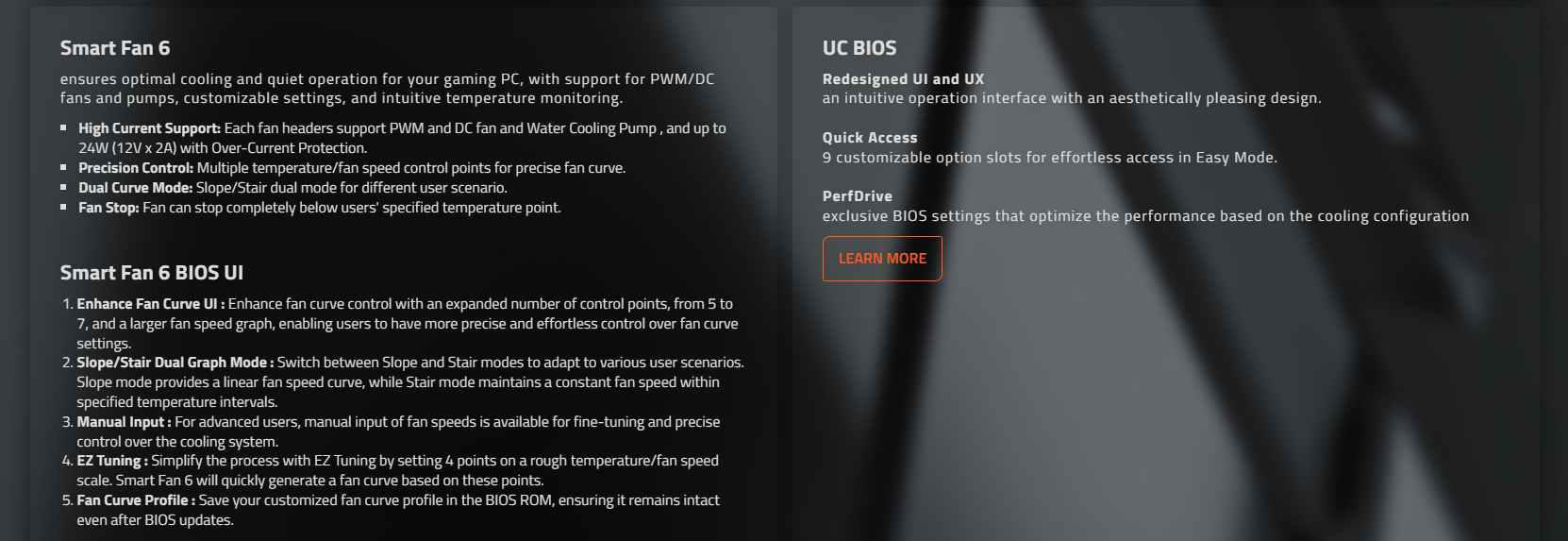 ● 智慧風扇 6:配備多個溫度感測器,混合風扇接口,支援風扇停轉功能。
