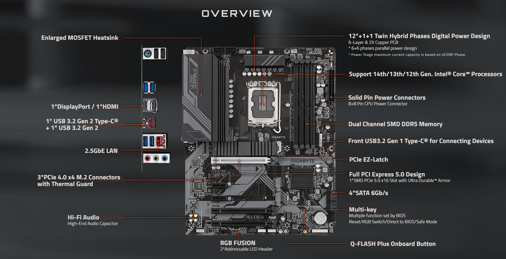● 雙通道 DDR5:4 個 DIMM 插槽,支援 XMP 3.0 記憶體模組