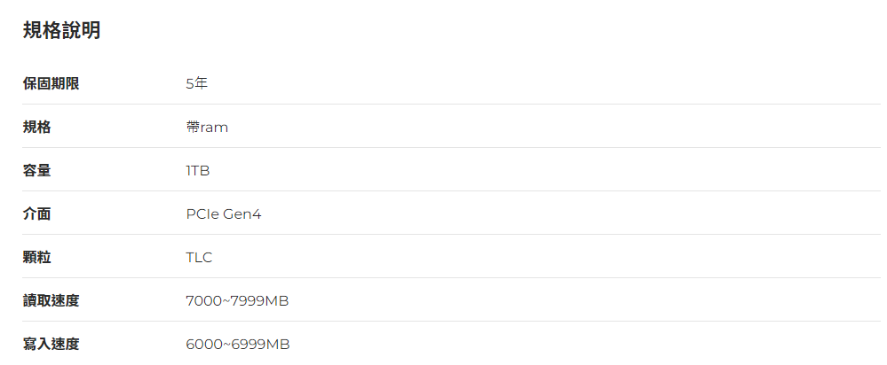 ✦ 7400M/寫6400M/TLC/五年保✦ 內建DRAM快取記憶體✦ 12nm低功耗控制晶片