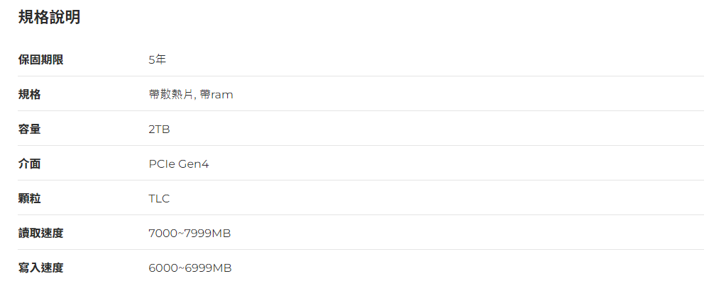 ✦ 高達每秒讀寫7,400/6,700MB✦ Pcie Gen4x4 最新技術✦ 內建DRAM快取記憶體,提升效能與延長壽命