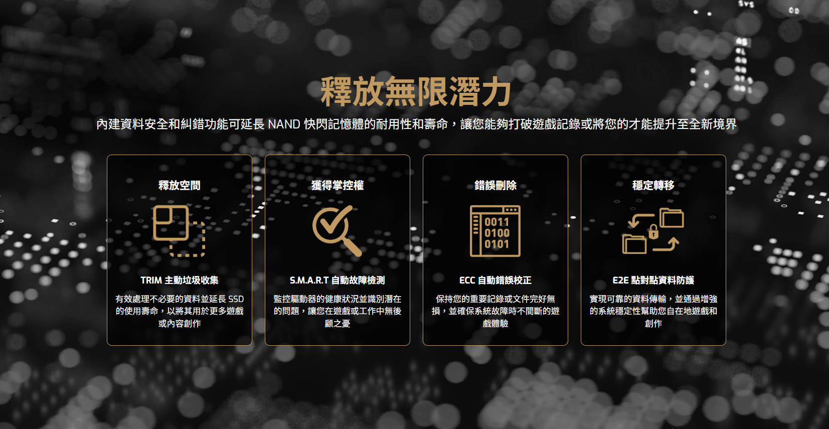 ✦ PCIe Gen 4x4介面和NVMe1.4標準
