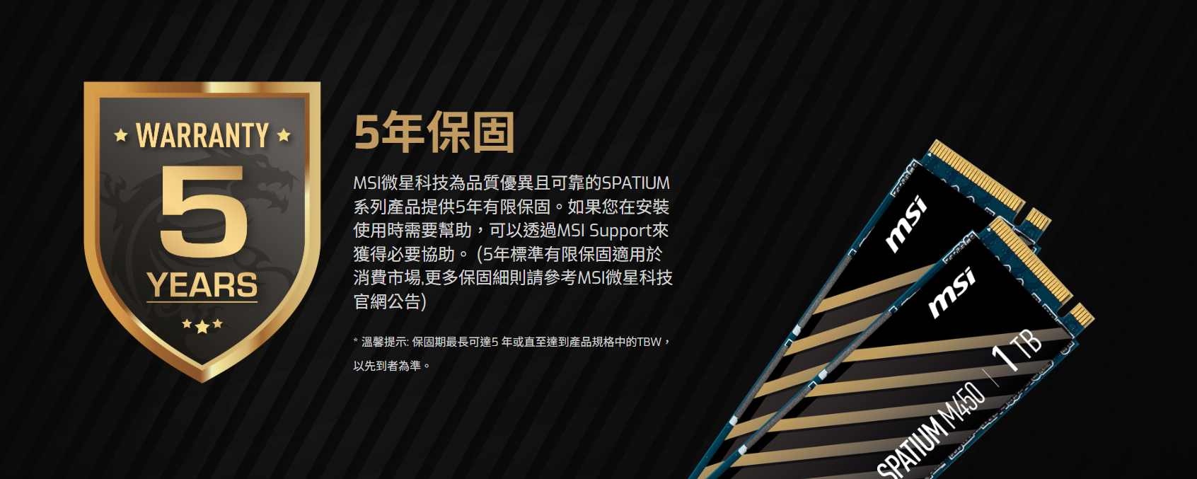 ✦ 五年有限保固或到達產品TBW / 到府收送服務
