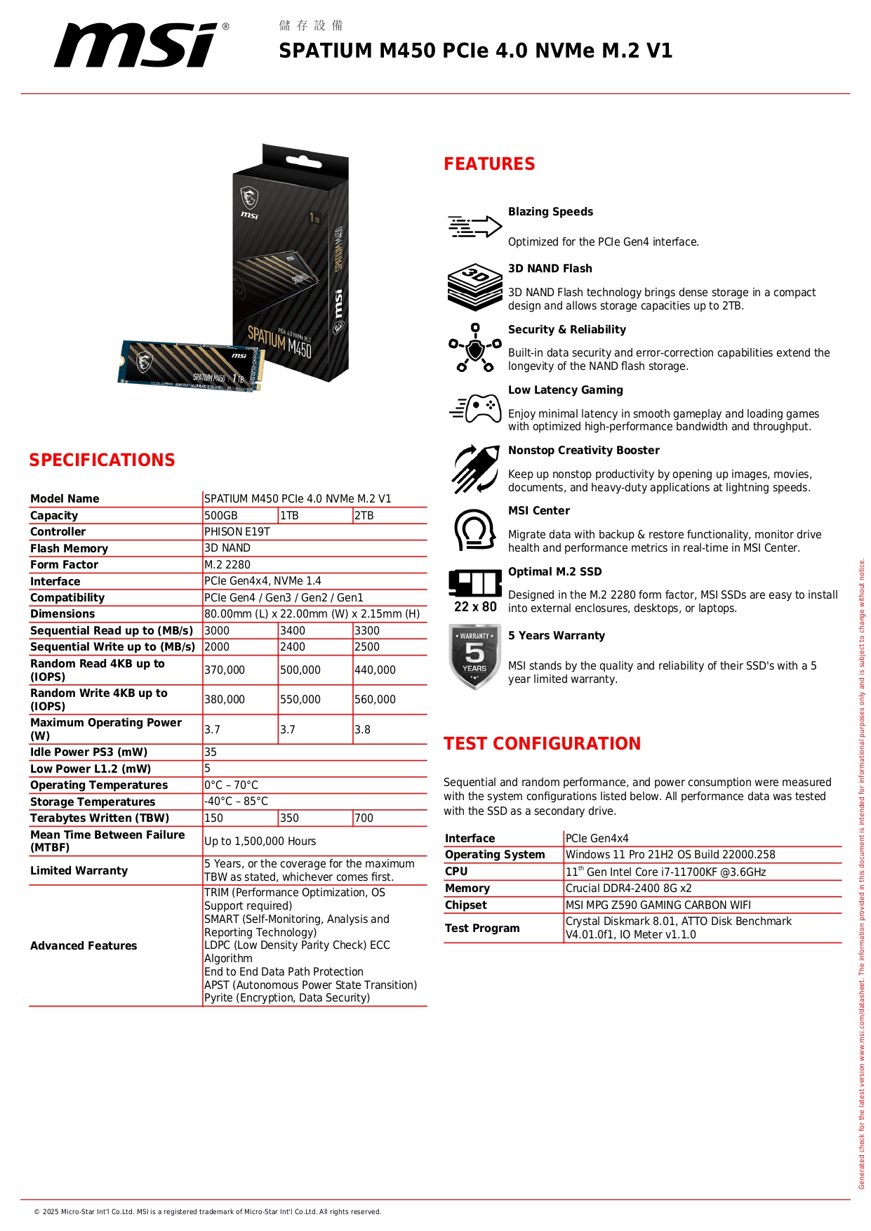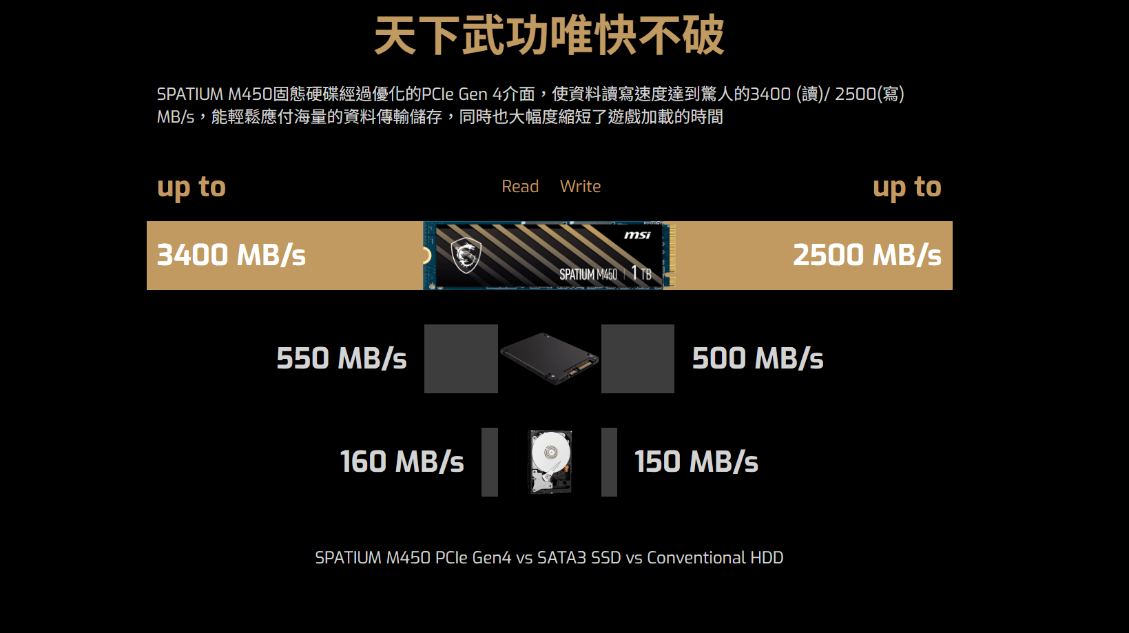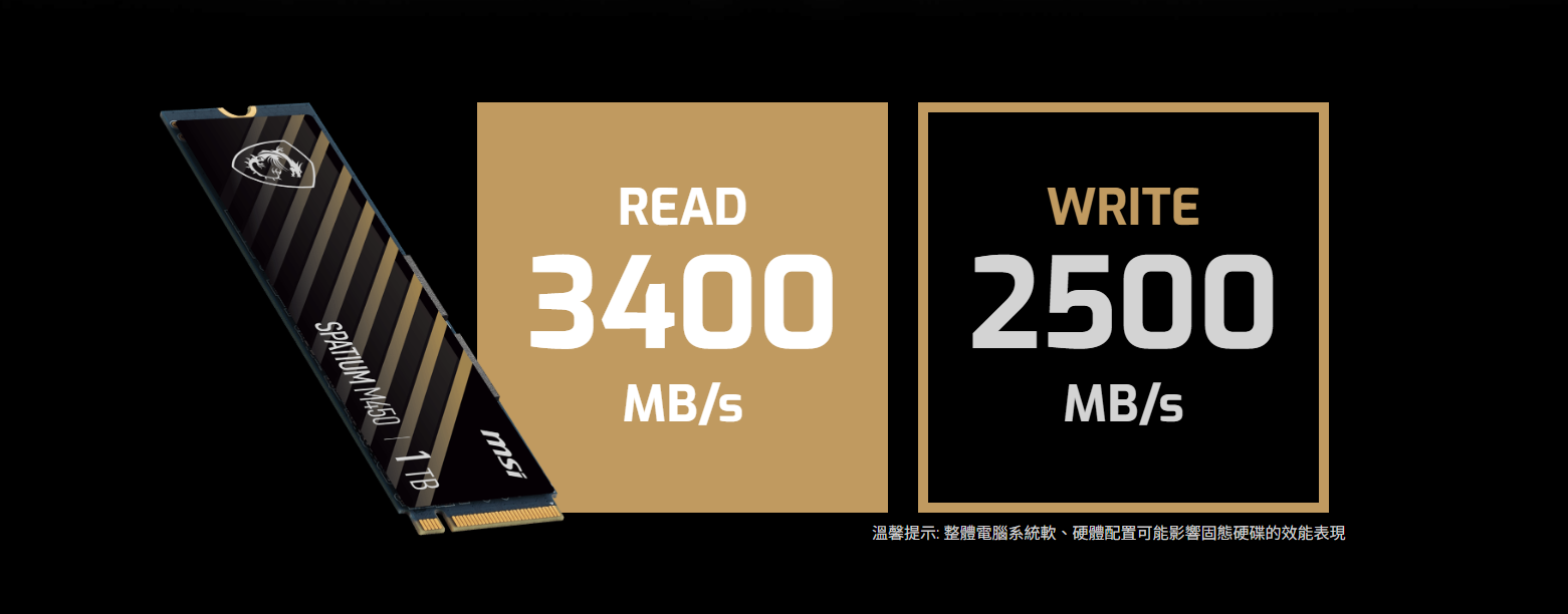 ✦ 最高可達3400 MB/秒之連續讀取速度和2500 MB /秒之連續寫入速度。