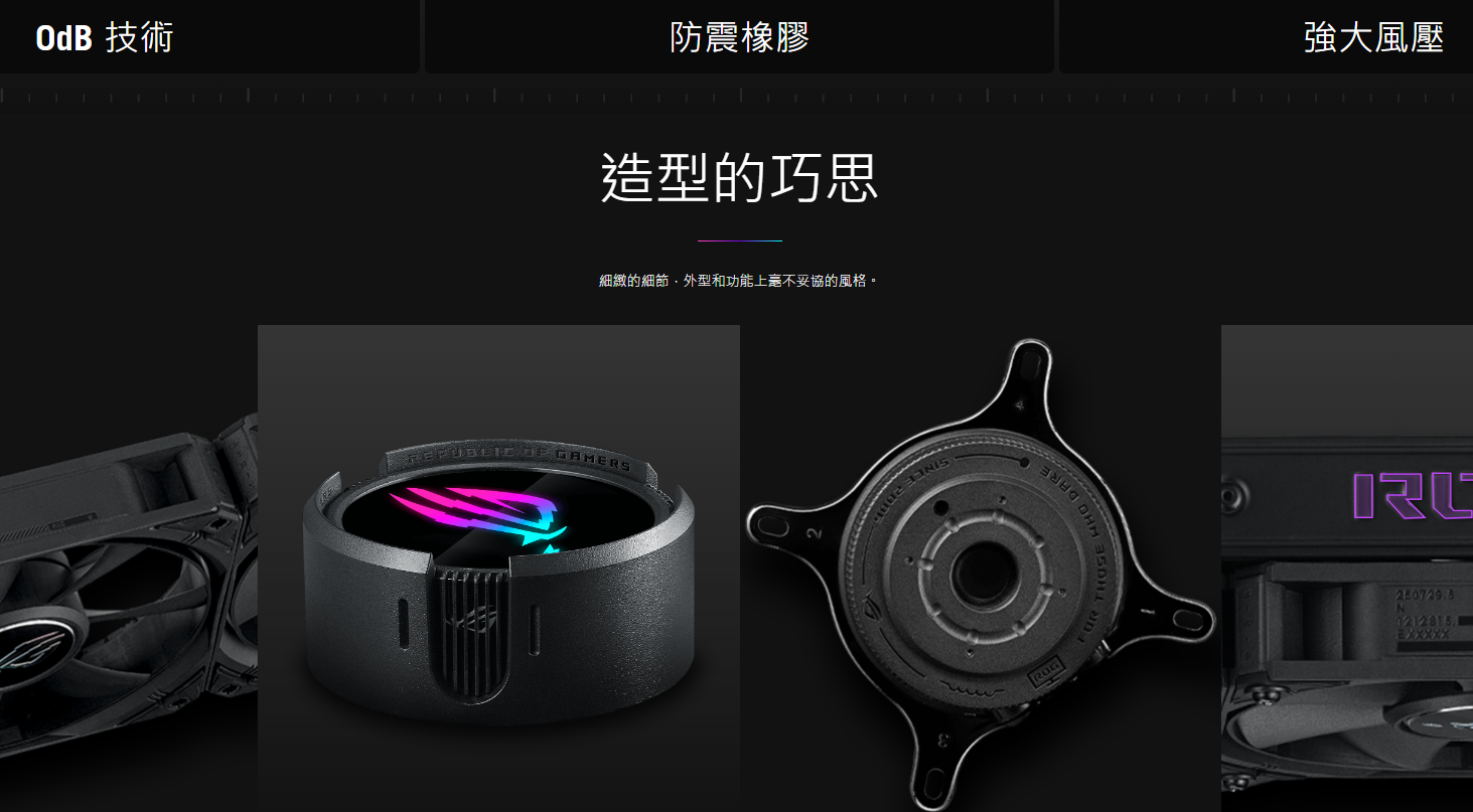 ● 高級 ROG 風扇,具有高風量、低噪音和 0dB 技術