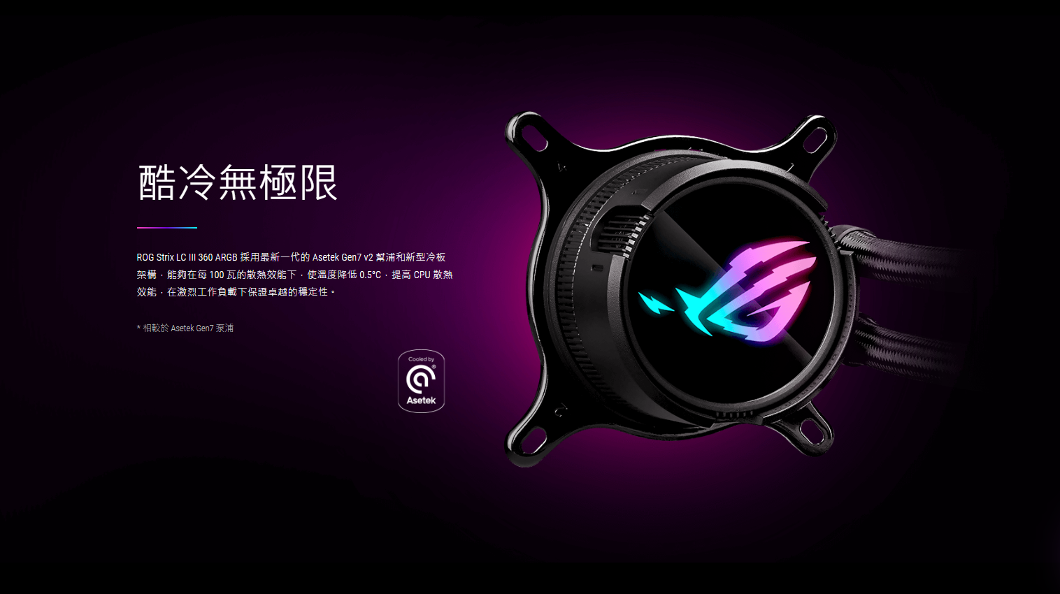 ● 全新的 Asetek Gen7 V2 幫浦,搭載強大的馬達,提供極佳散熱性能