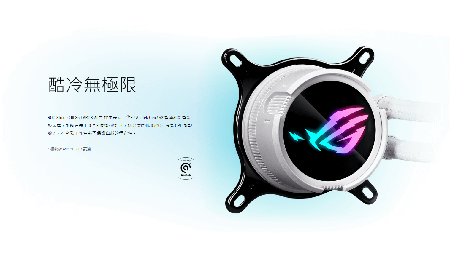 ● 全新的 Asetek Gen7 V2 幫浦,搭載強大的馬達,提供極佳散熱性能