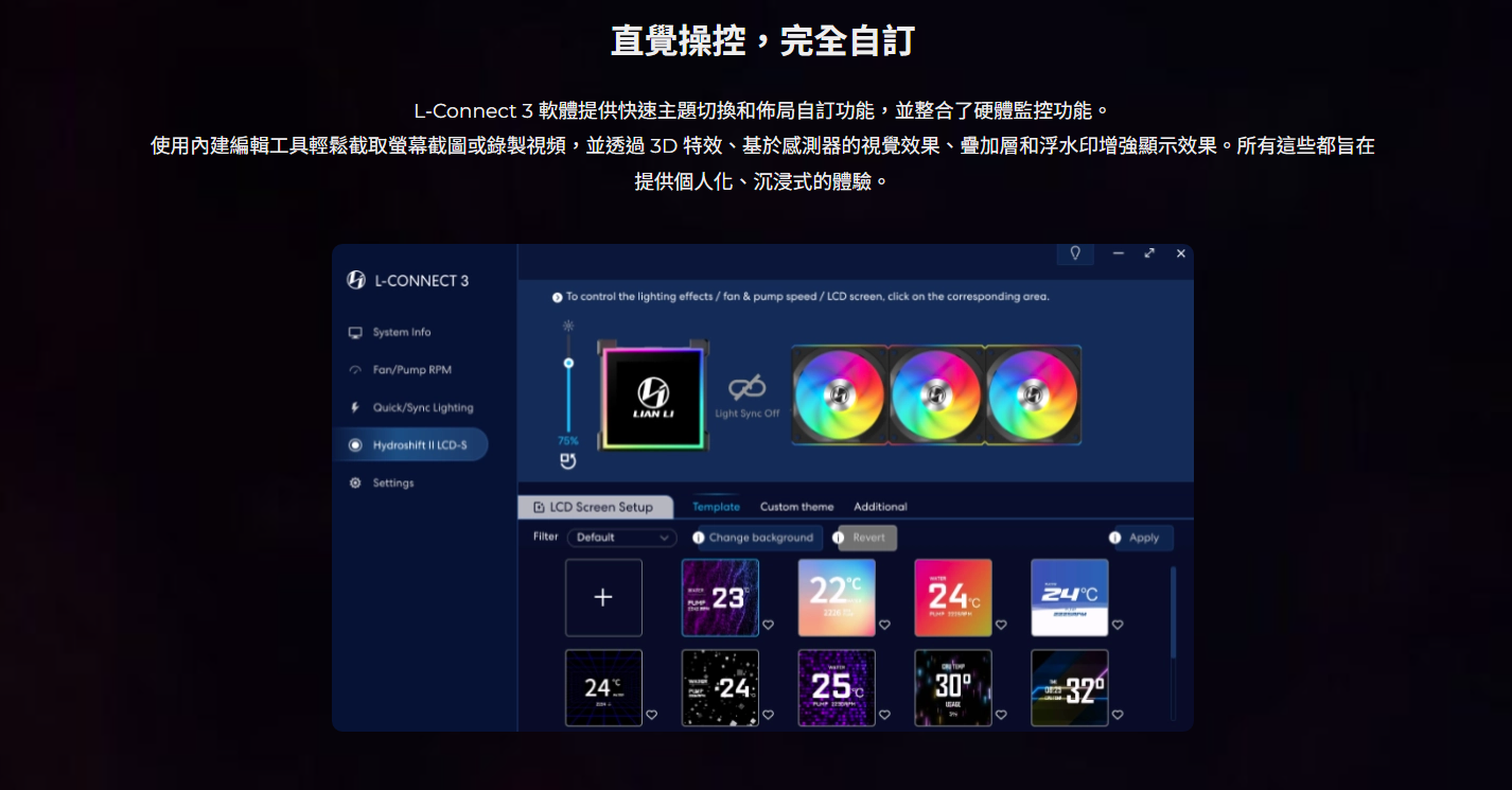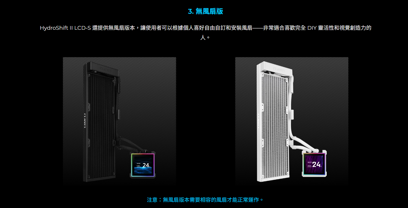 競新資訊SOEASY電腦|聯力 HydroShift II LCD-S 360TL(黑)/TL無線風扇+控制器/3.4吋/側置水冷管/6年