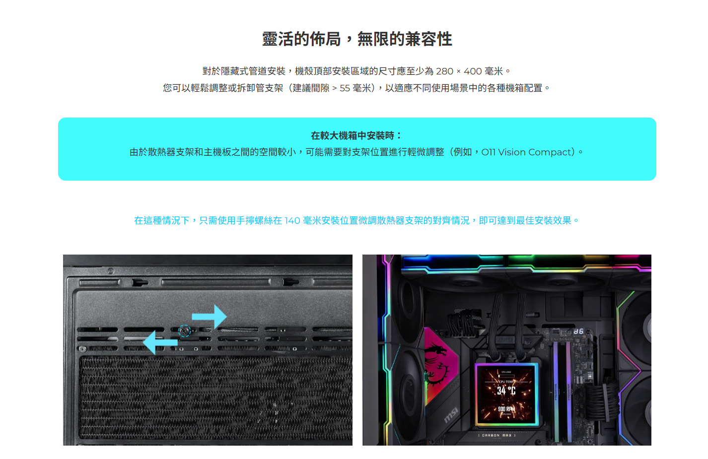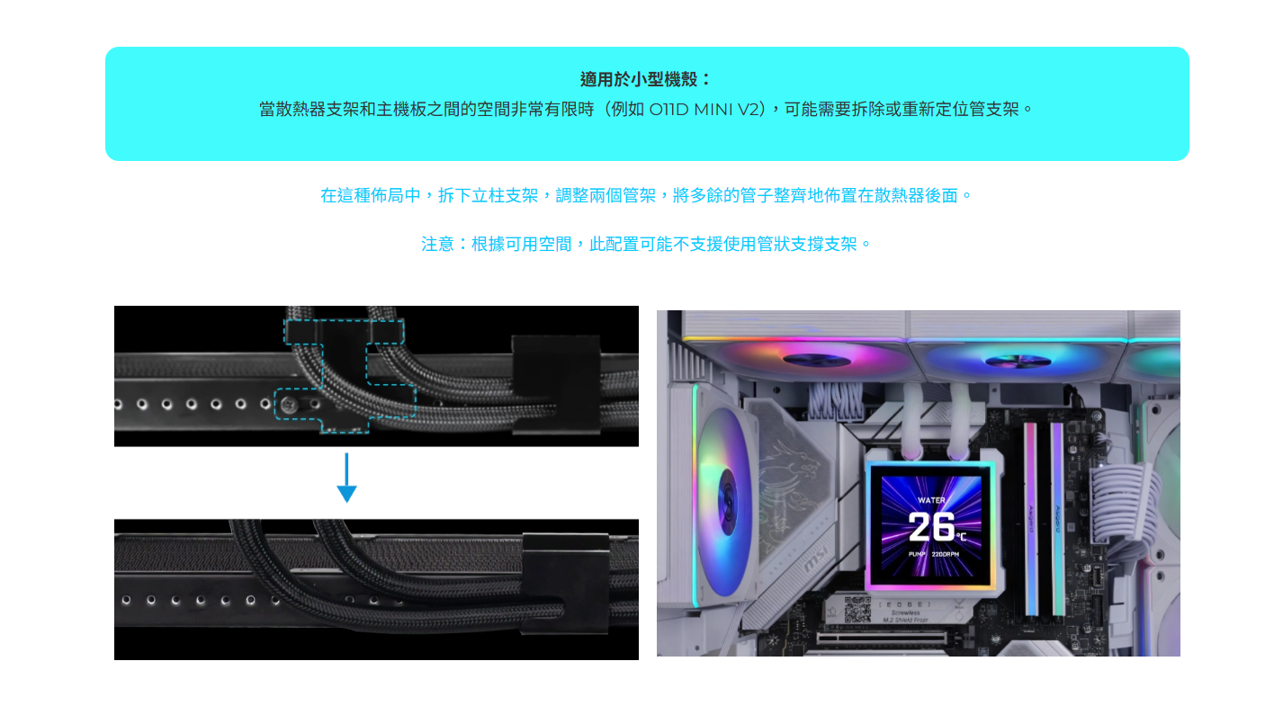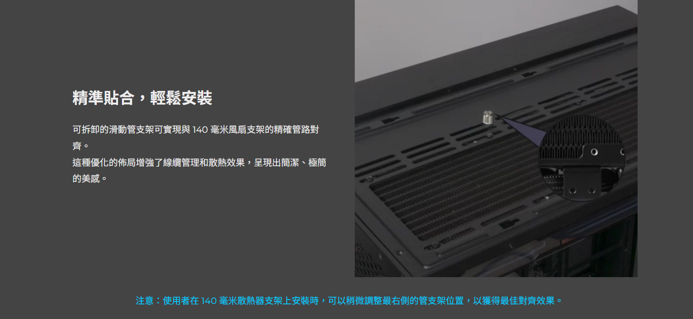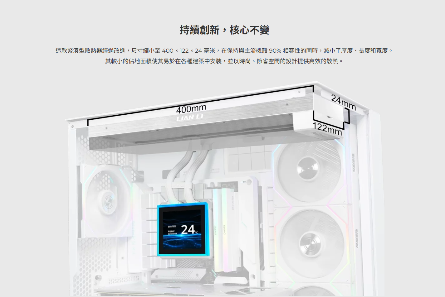 ✦ 緊湊型 360mm 散熱器(400 × 122 × 24 毫米),外觀更纖薄,相容性更強,安裝更方便。