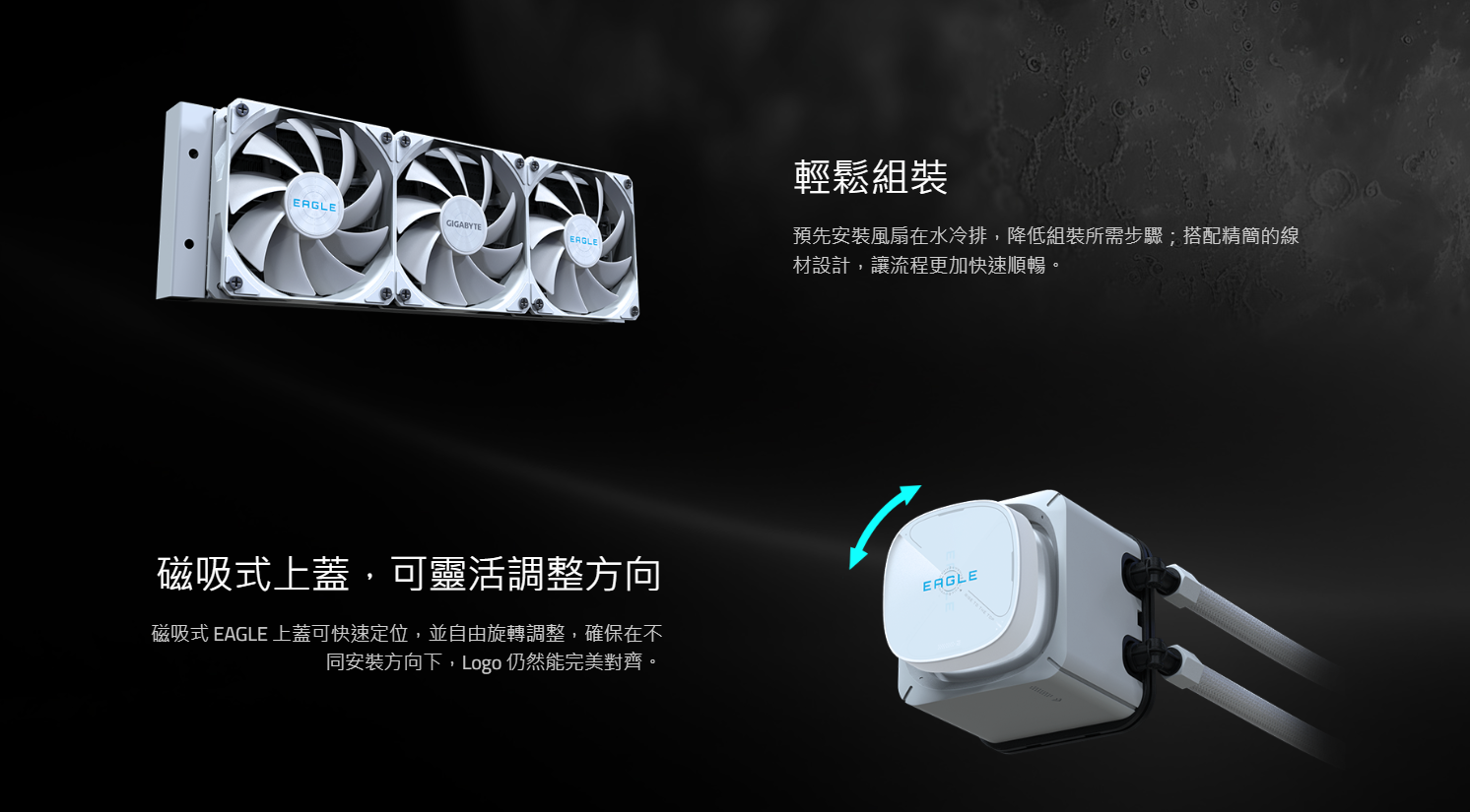 ✦ 磁吸式水冷頭上蓋, Logo 方向可完美對齊
