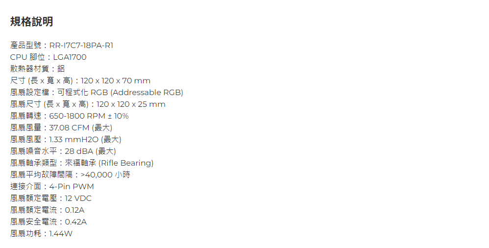 酷碼 I70C ARGB LGA1700 下吹式 散熱器/高度7cm/12cm風扇