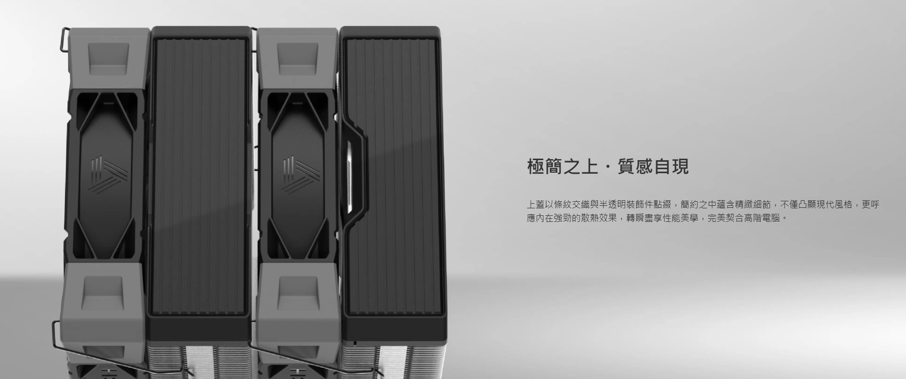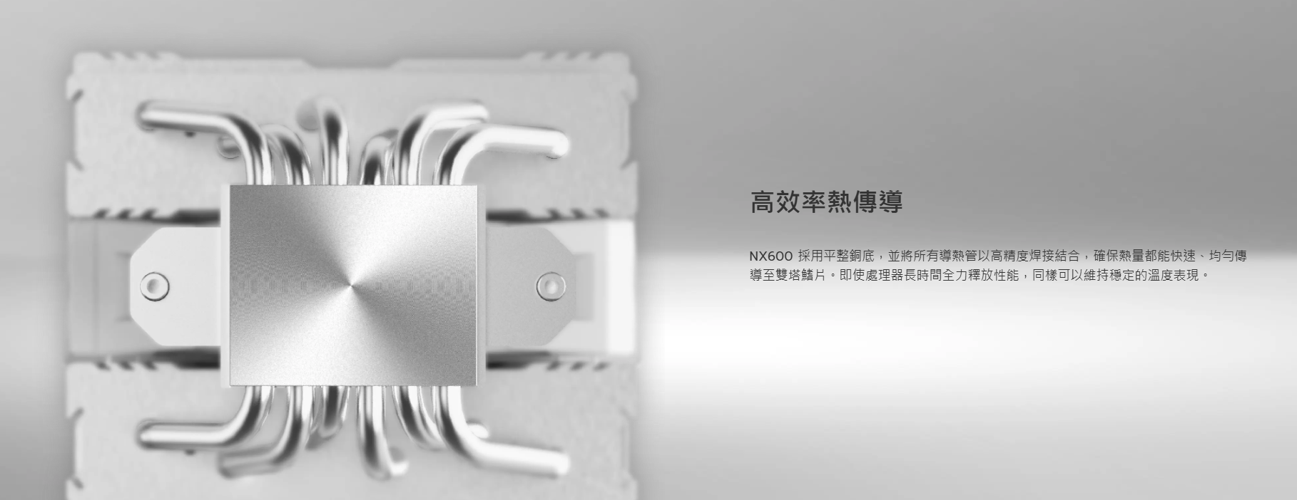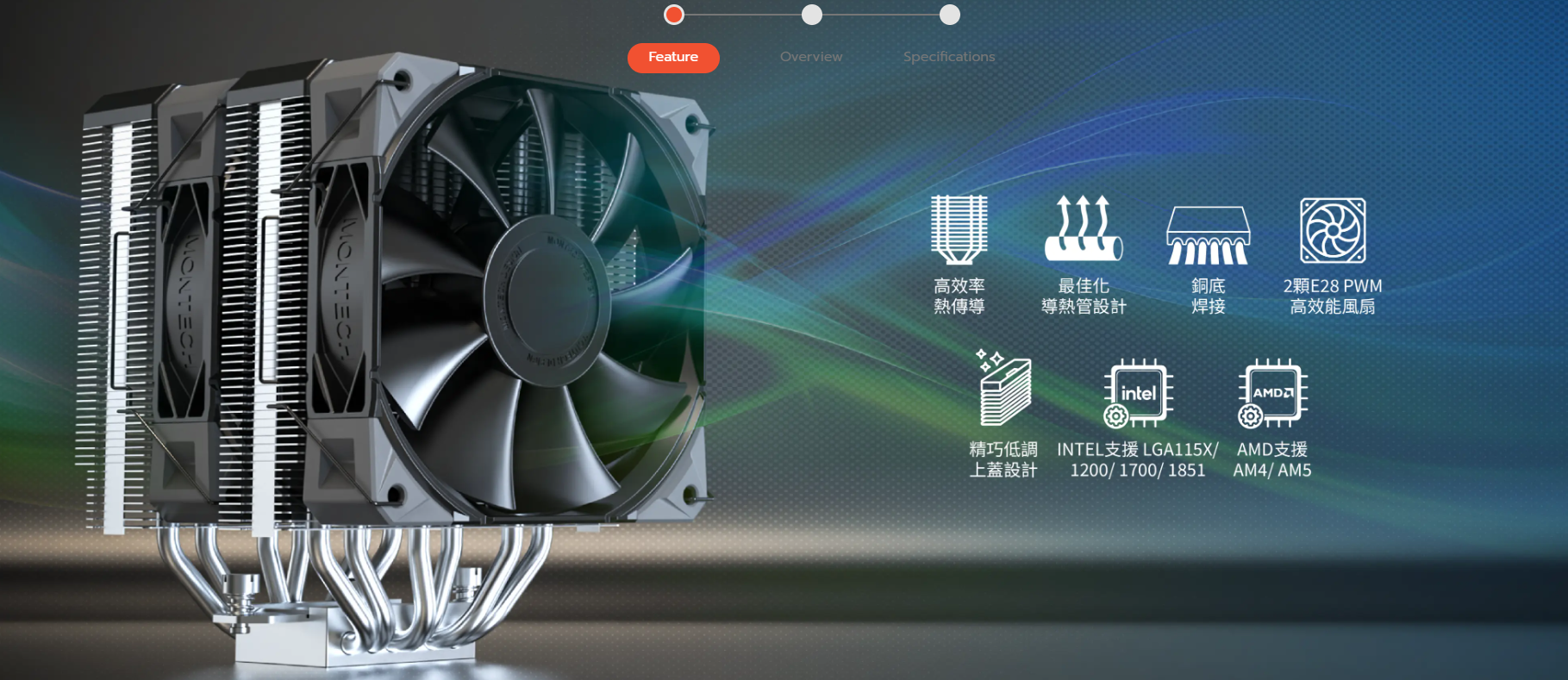 NX600 為追求電腦性能表現的遊戲玩家與創作者設計,以雙塔架構展現全面的散熱統御能力,將極致散熱效能與極簡美學合而為一。搭載的兩顆旗艦級 MONTECH E28 PWM高性能風扇與焊接銅底座,為高效能CPU提供穩定、強勁的散熱效果。