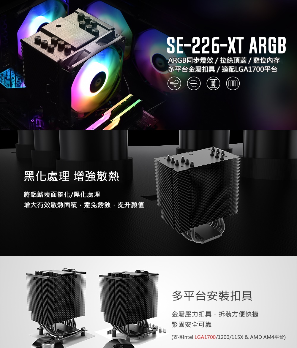 ●多平台安裝扣具,支援LGA1700/1200/115X 、AM4平台