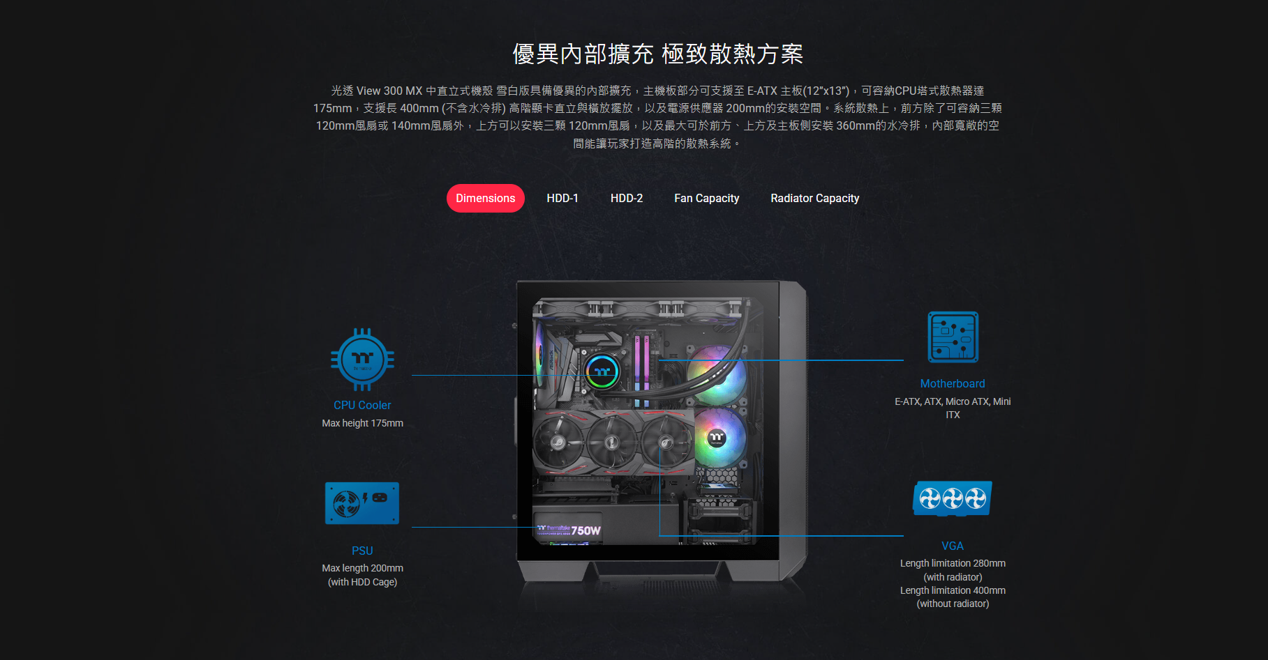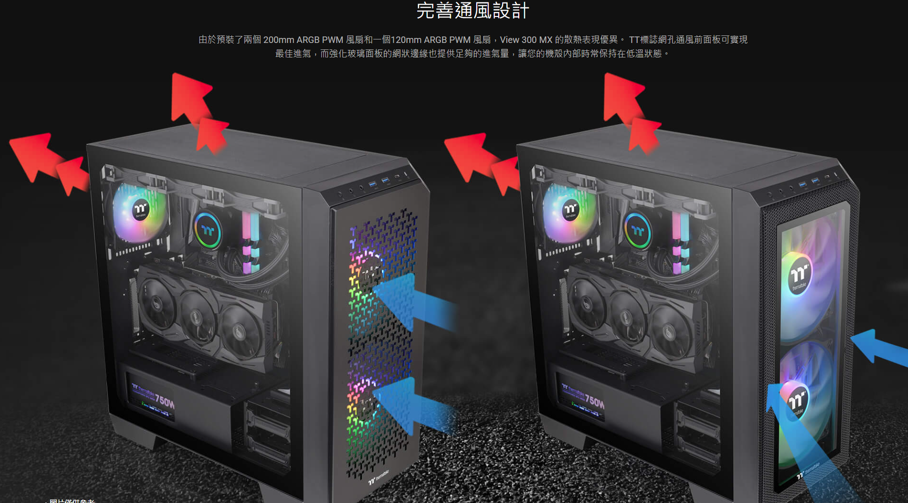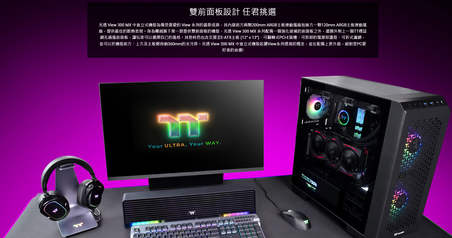 曜越 View 300 MX 黑 顯卡長40/CPU高17.5/玻璃透側/雙面版/E-ATX