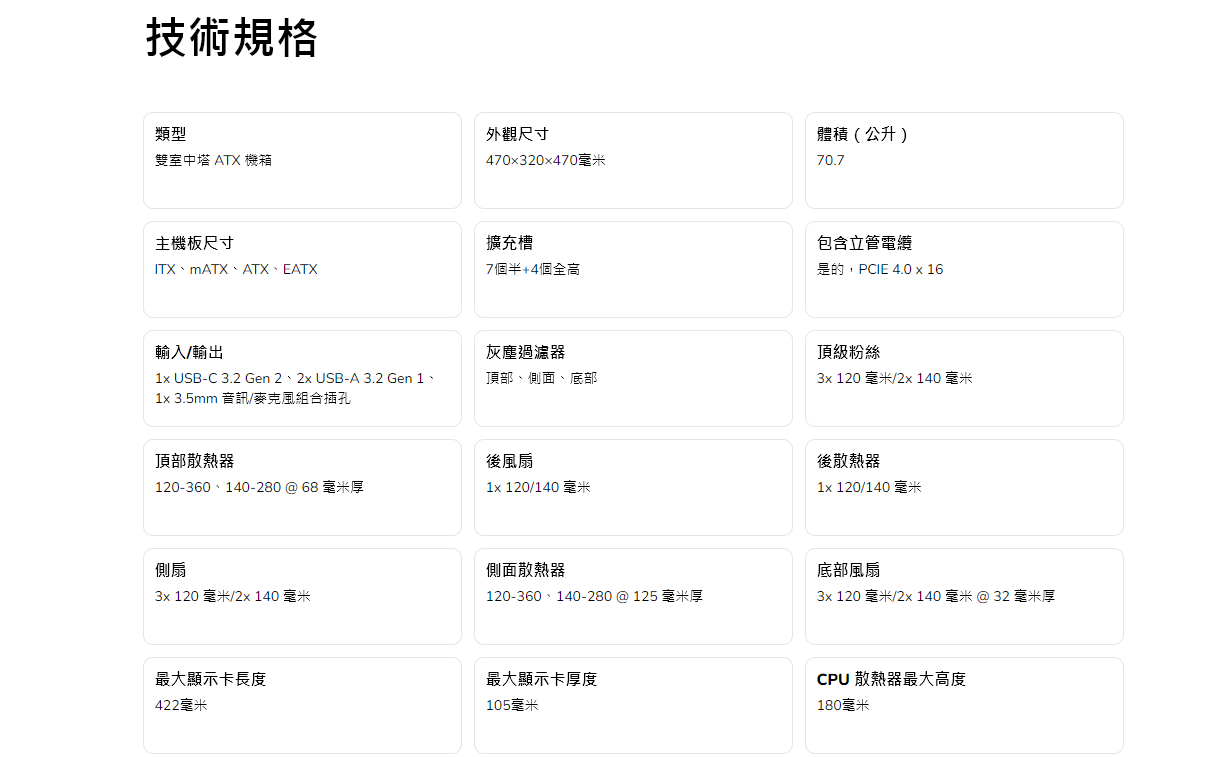 主機板支援:E-ATX、ATX、m-ATX、ITX
