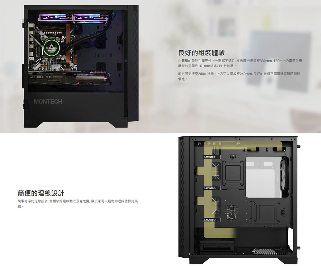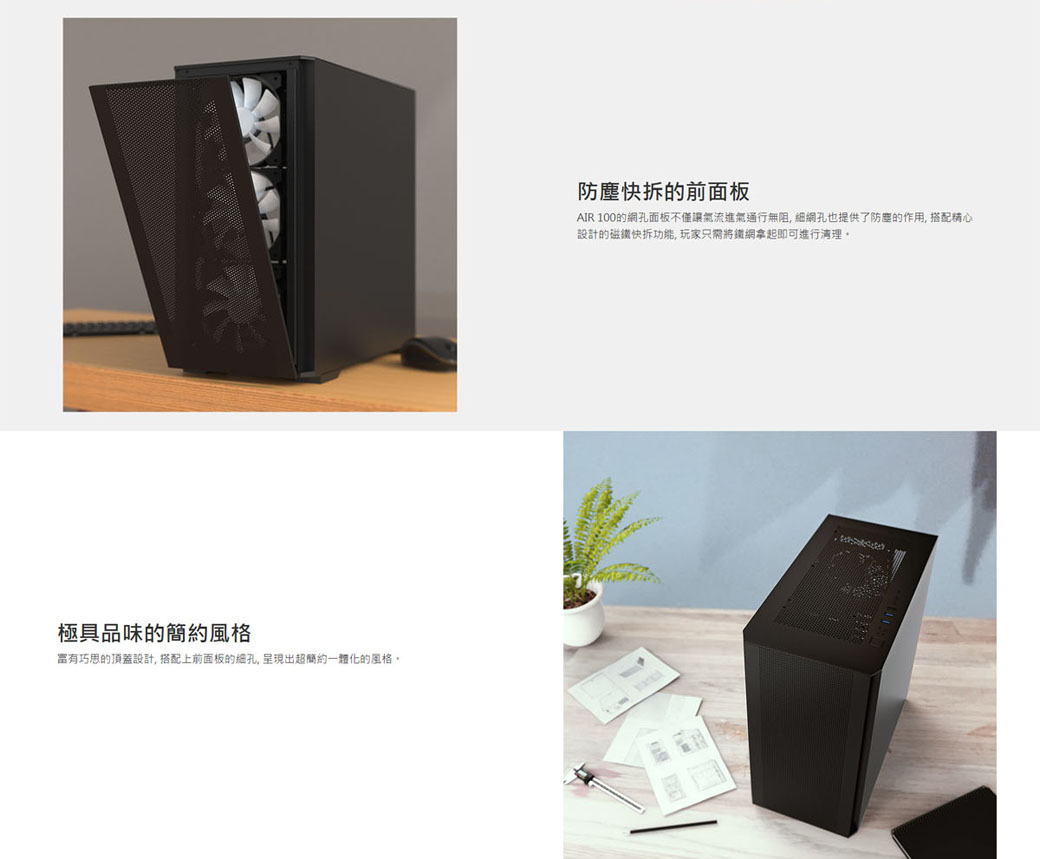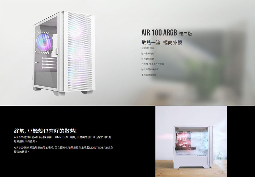 Montech Air 100 ARGB 白 顯卡長33/CPU高16.1/磁吸面板/側掀玻璃側板/M-ATX